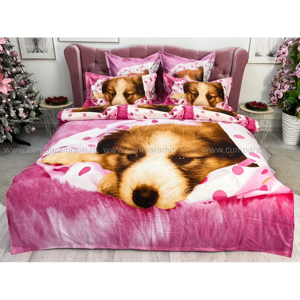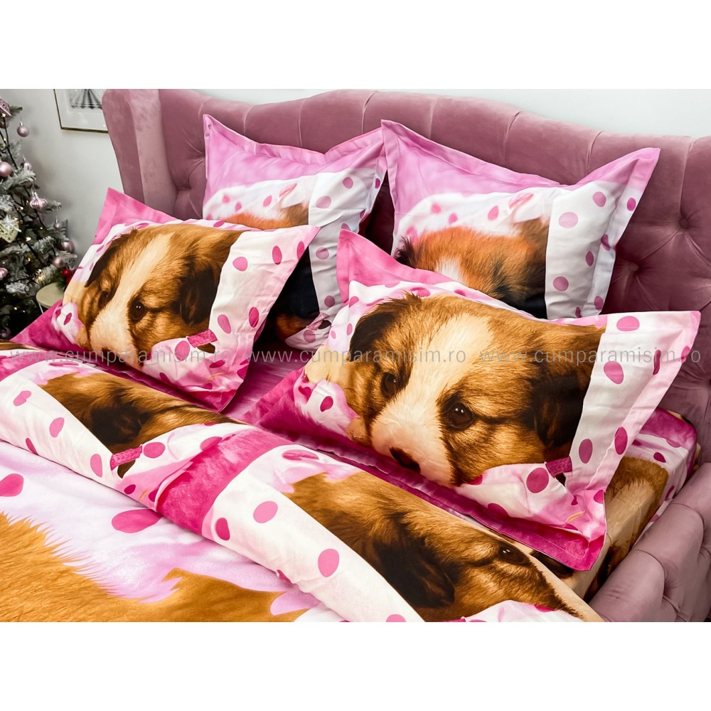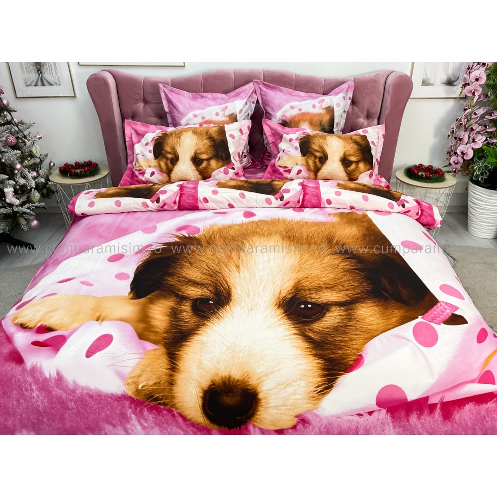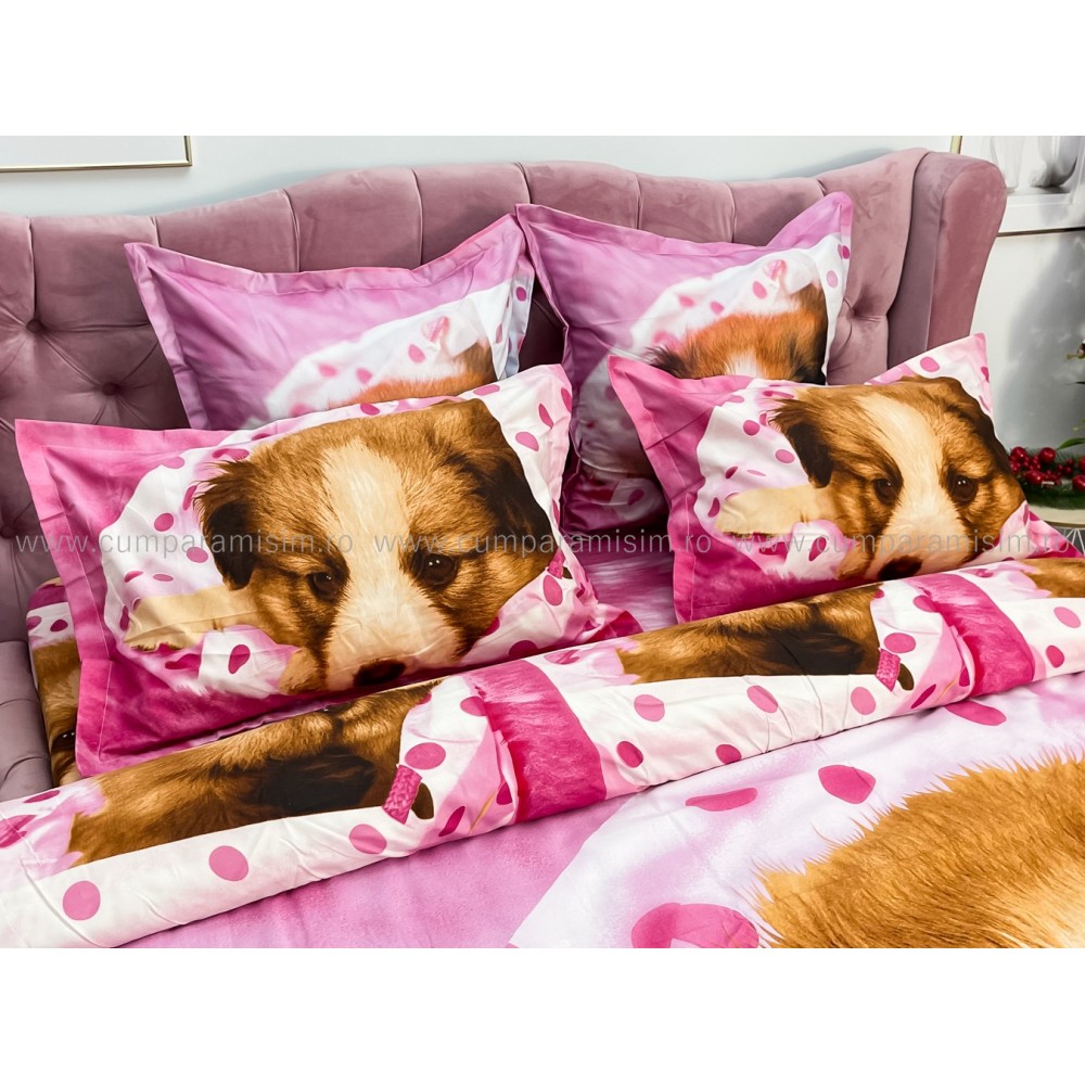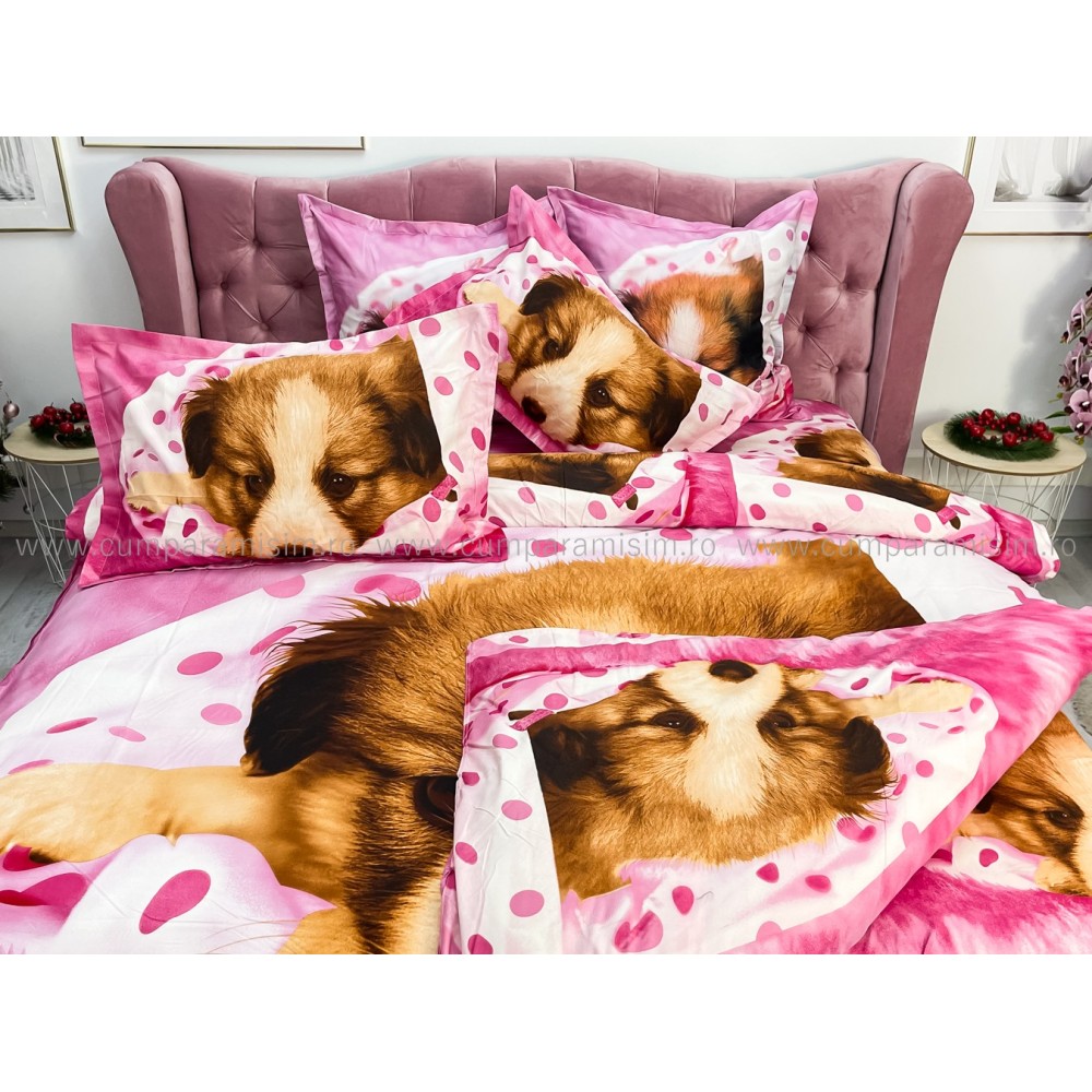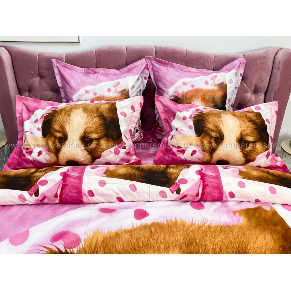 Lenjerie pat dublu, FINET, Imprimeu Digital - Identic cu poza, 6 piese, Jojo Home, Roz-Multicolor, catel, cod produs: JOF522