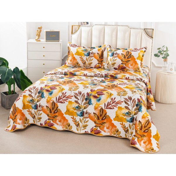 Cuvertura pat dublu din Bumbac Satinat Superior, 3 PIESE, Portocaliu, frunze, Alti producatori, cod produs: CVP163
