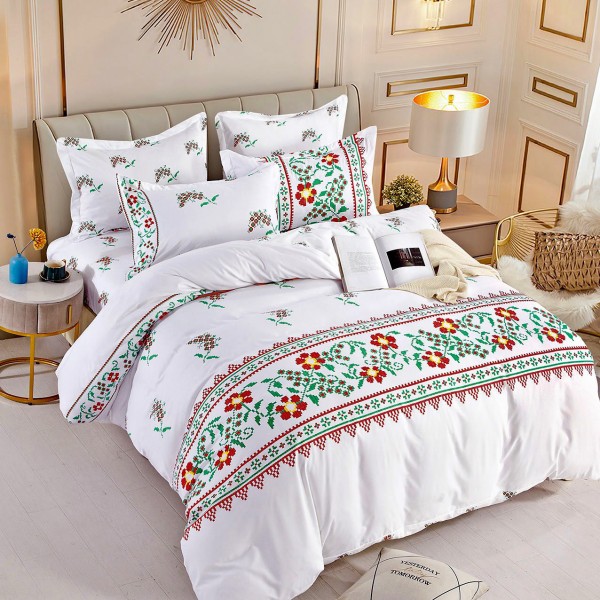 Lenjerie pat 1 PERSOANA, FINET, 4 piese, Jojo Home, Alb-Rosu, model traditional, cod produs: JOS154