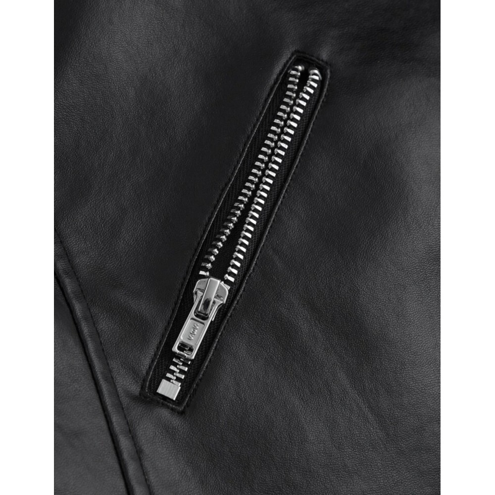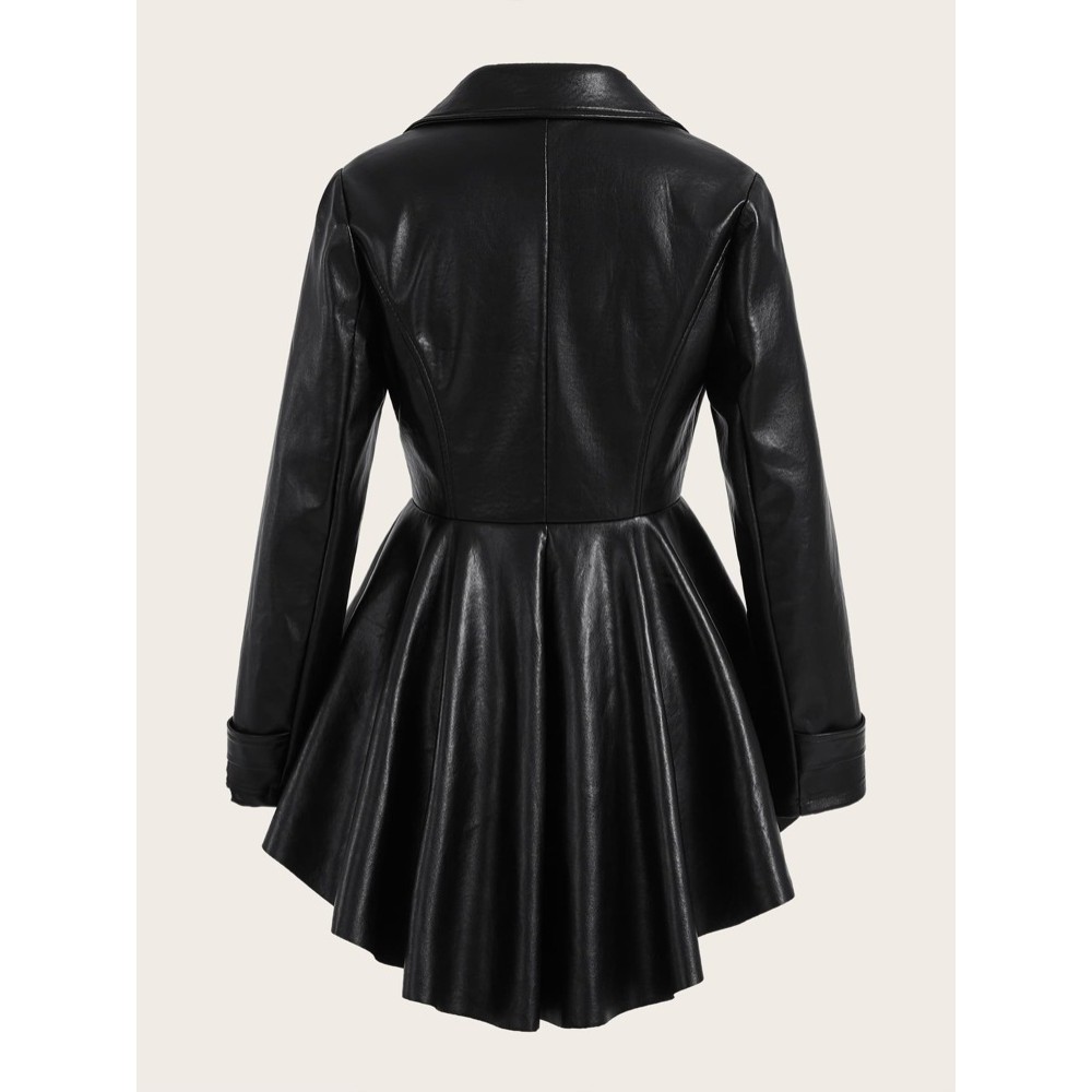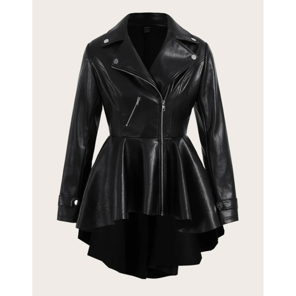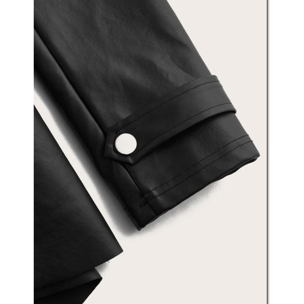 Jacheta din piele ecologica, pana in talie, cu croi cambrat. Jacheta se inchide cu fermoar si capse.