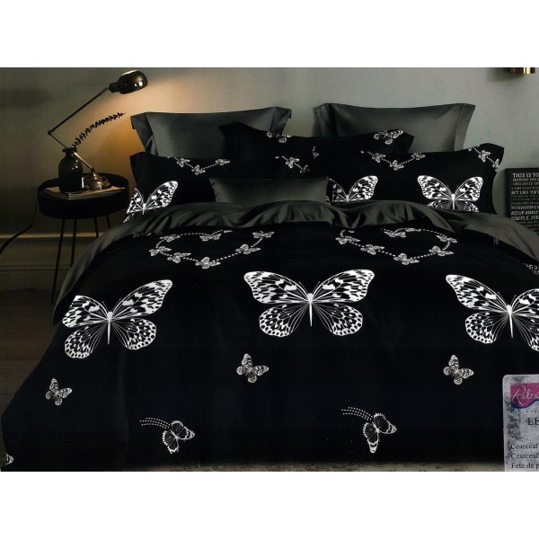 Lenjerie pat dublu, Ralex Pucioasa, Finet, 6 piese, Negru-Alb, fluturi, cod produs: RXF217