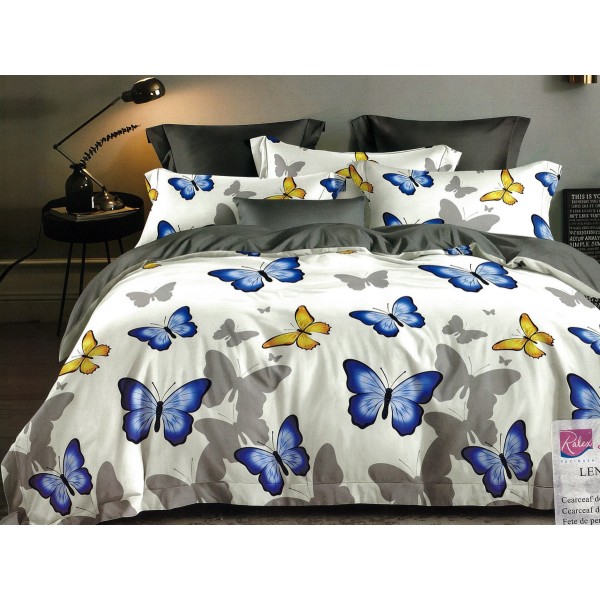 Lenjerie pat dublu, Ralex Pucioasa, Bumbac Finet, 6 piese, Alb-Gri, fluturi, cod produs: RXF221