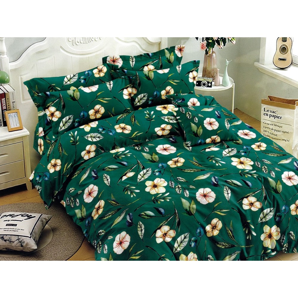 Lenjerie pat dublu, Ralex Pucioasa, Finet, 6 piese, Verde, flori, cod produs: RXF234