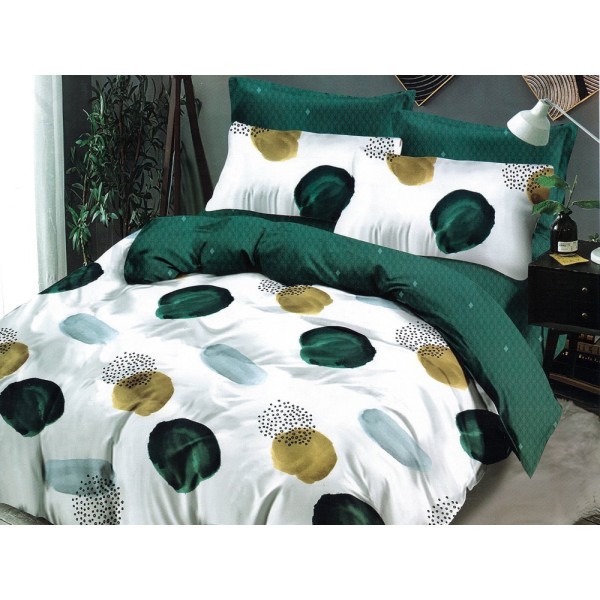 Lenjerie pat dublu, Ralex Pucioasa, Finet, 6 piese, cu elastic, Alb, buline, cod produs: RXF502