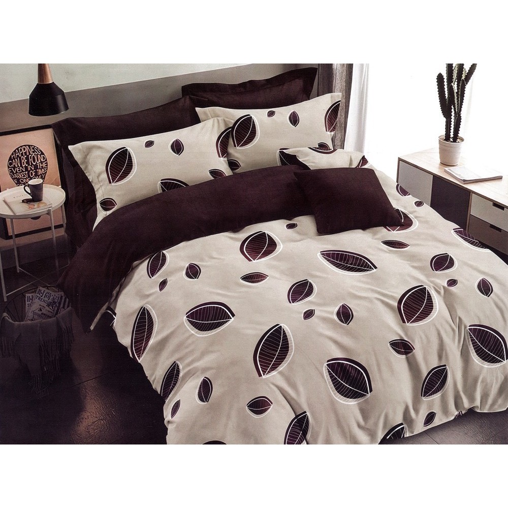 Lenjerie pat dublu, Ralex Pucioasa, Finet, 6 piese, cu elastic, Bej, flori, cod produs: RXF505