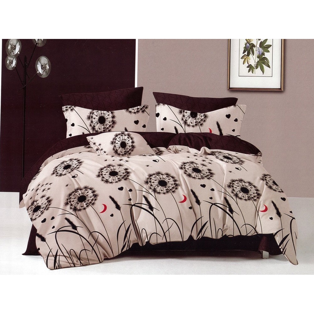 Lenjerie pat dublu, Ralex Pucioasa, Finet, 6 piese, cu elastic, Bej-Maro, papadii, cod produs: RXF512