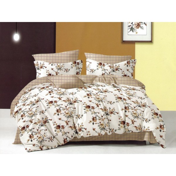 Lenjerie pat dublu, Ralex Pucioasa, Finet, 6 piese, cu elastic, Alb-Bej, flori, cod produs: RXF518