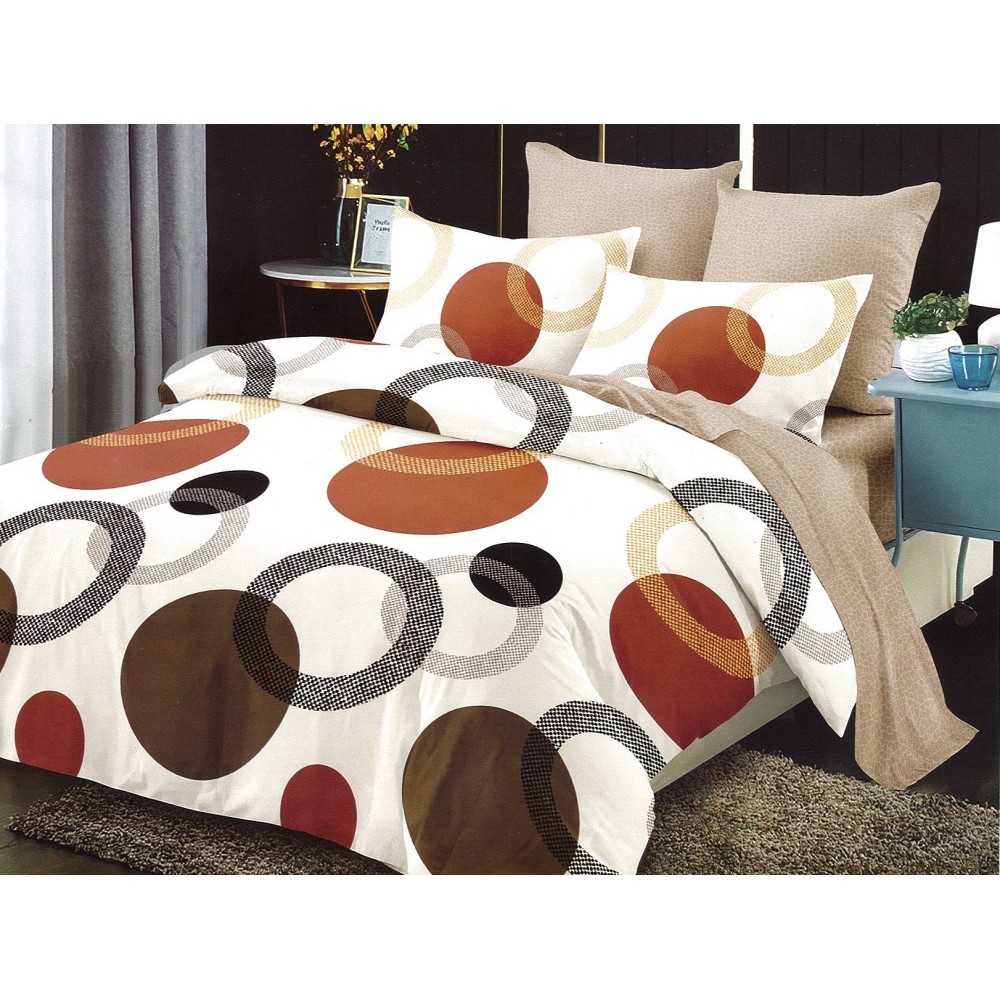 Lenjerie pat dublu, Ralex Pucioasa, Finet, 6 piese, cu elastic, Bej, cercuri, buline, cod produs: RXF520