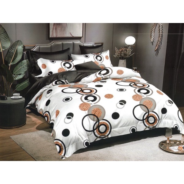 Lenjerie pat dublu, Ralex Pucioasa, Finet, 6 piese, cu elastic, Alb-Gri, cercuri, buline, cod produs: RXF521