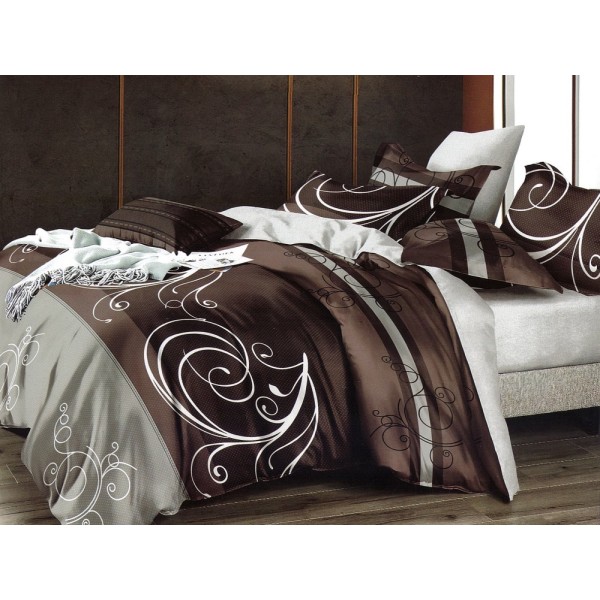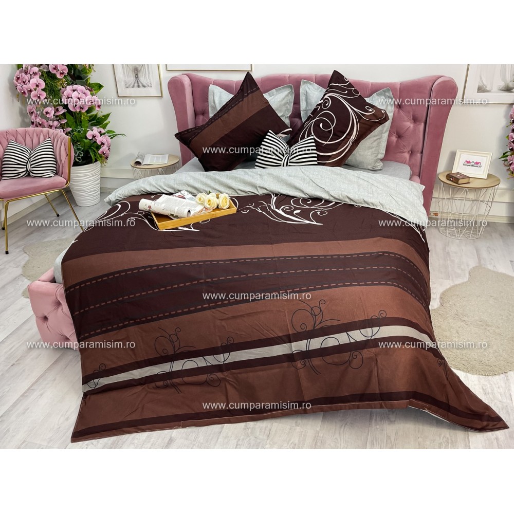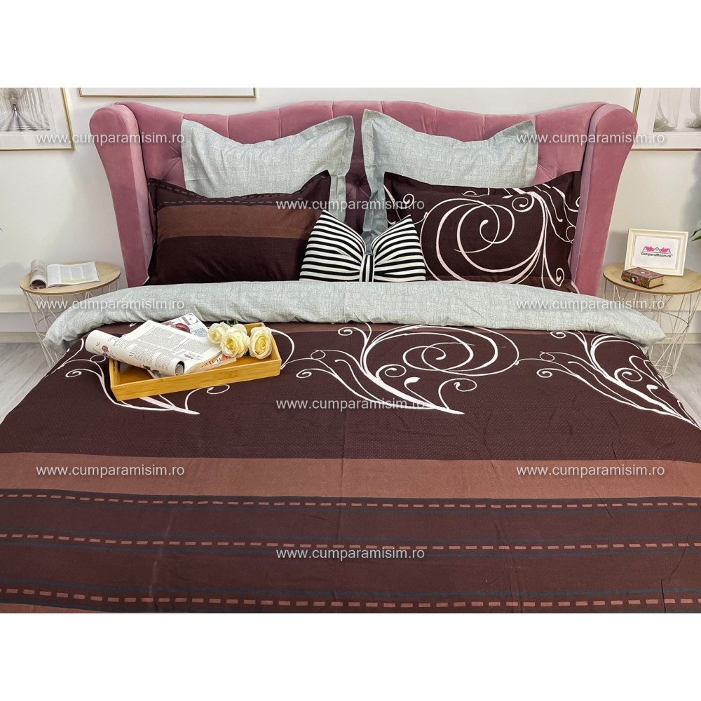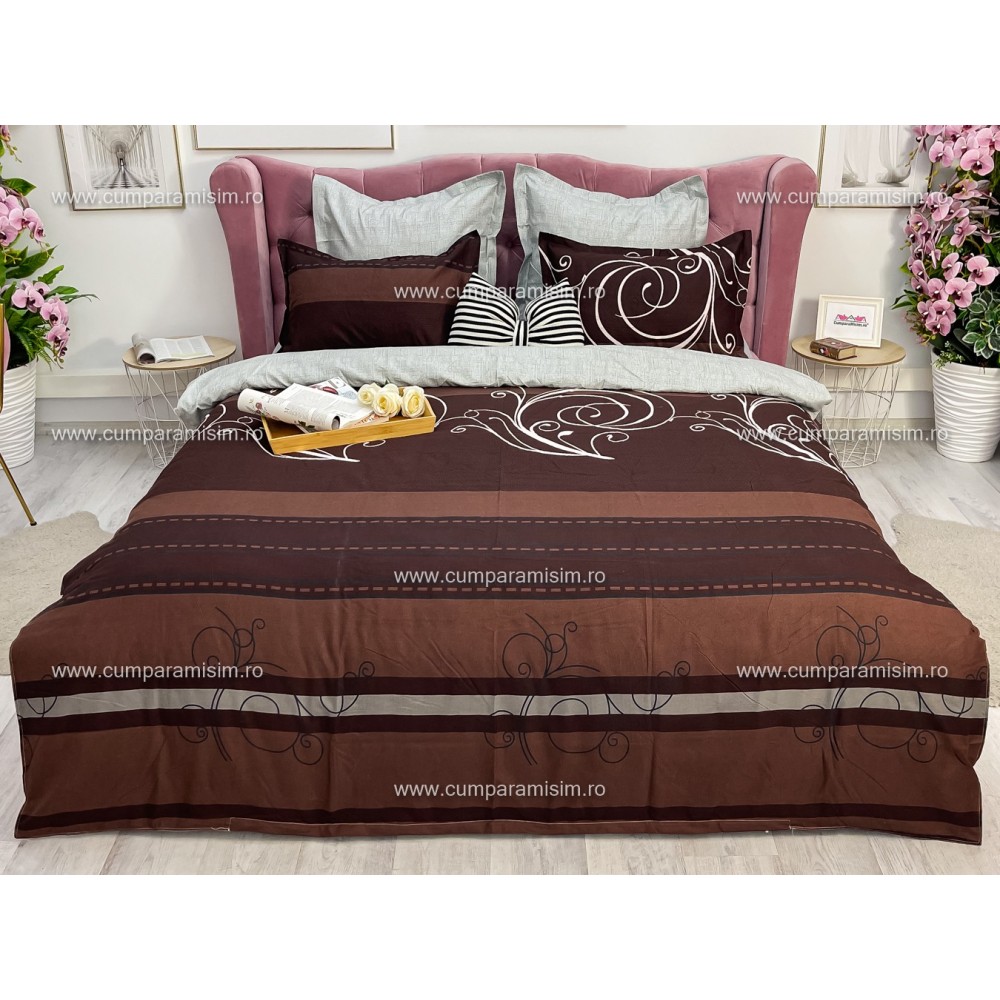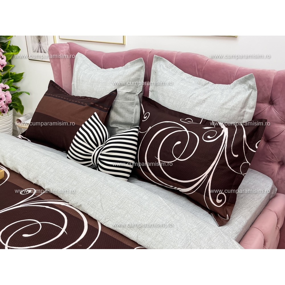 Lenjerie pat dublu, Ralex Pucioasa, Finet, 6 piese, cu elastic, Gri-Maro, model elegant, cod produs: RXF523