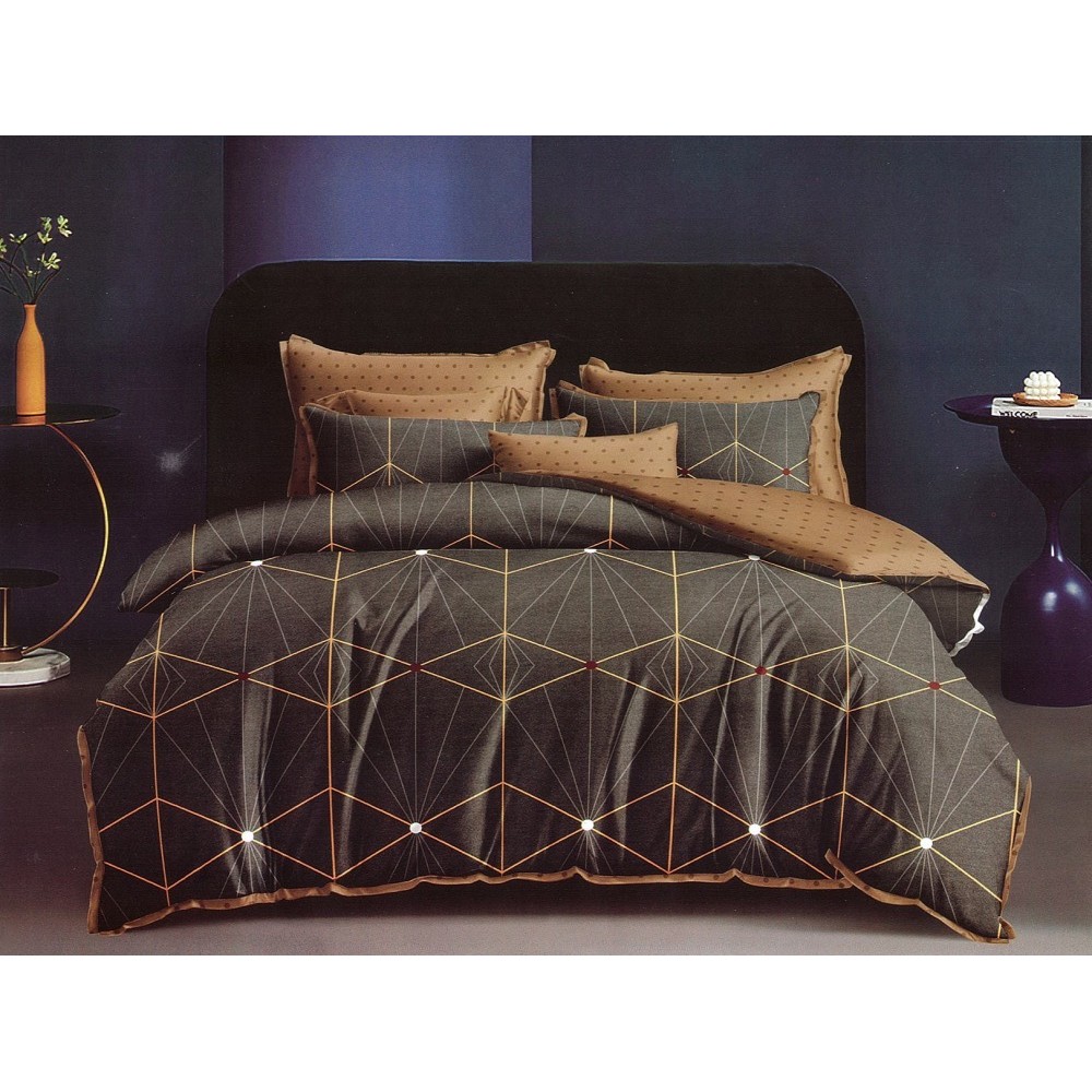 Lenjerie pat dublu, Ralex Pucioasa, Finet, 6 piese, cu elastic, Gri-Maro, model clasic, cod produs: RXF537