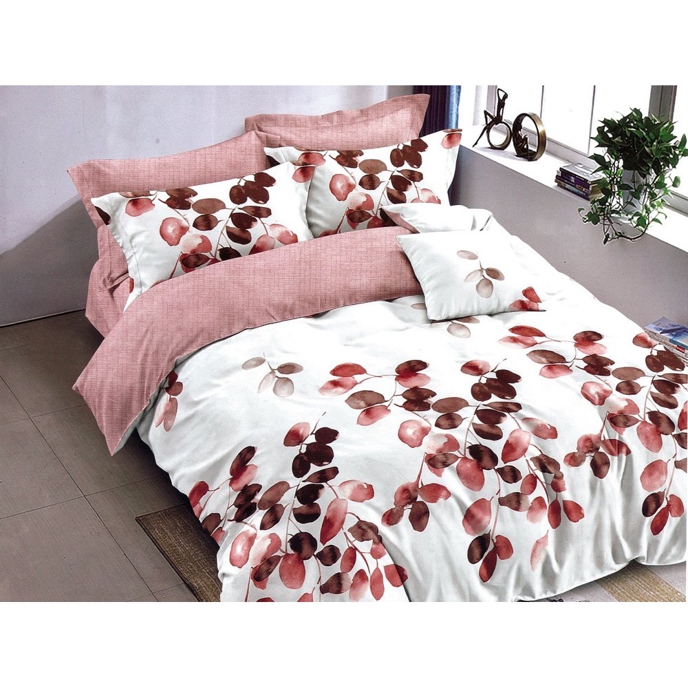Lenjerie pat dublu, Ralex Pucioasa, Finet, 6 piese, cu elastic, Alb-Roz, flori, cod produs: RXF547