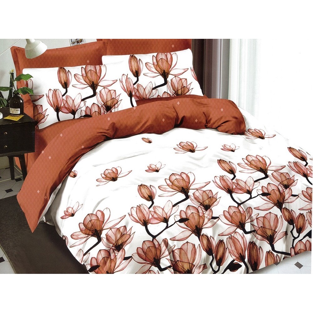Lenjerie pat dublu, Ralex Pucioasa, Finet, 6 piese, cu elastic, Alb-Maro, flori, cod produs: RXF550