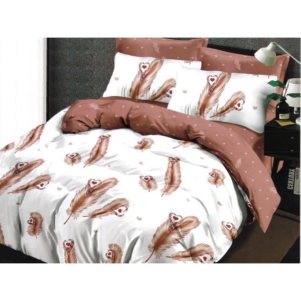 Lenjerie pat dublu, Ralex Pucioasa, Finet, 6 piese, cu elastic, Alb-Bej, pene, cod produs: RXF555