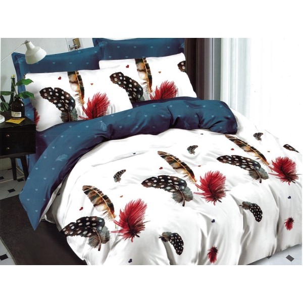 Lenjerie pat dublu, Ralex Pucioasa, Finet, 6 piese, cu elastic, Alb-Bleumarin, pene, cod produs: RXF556