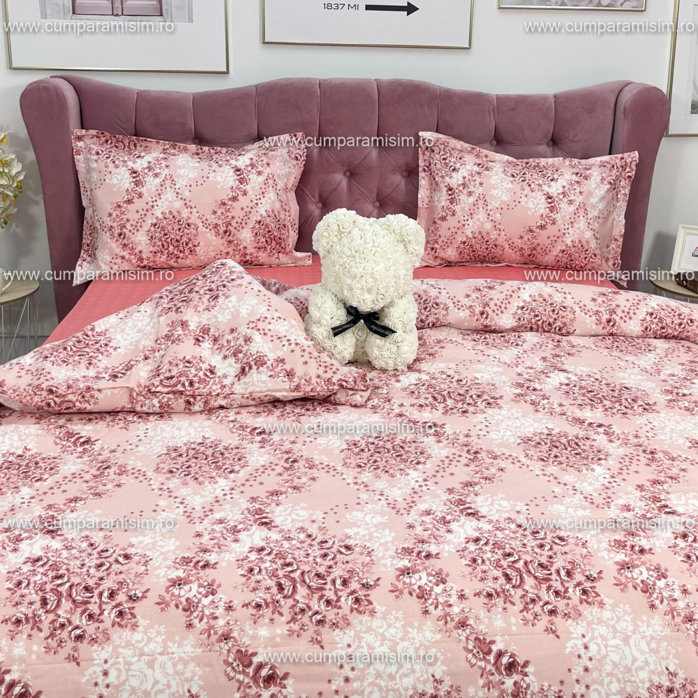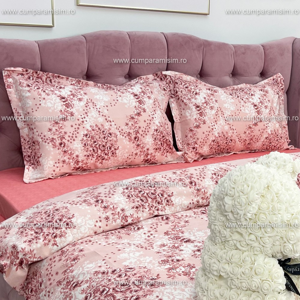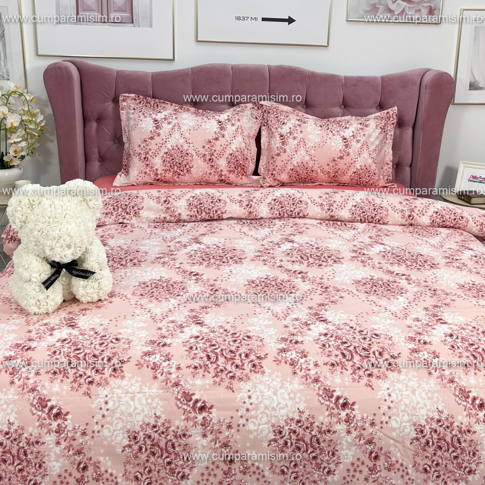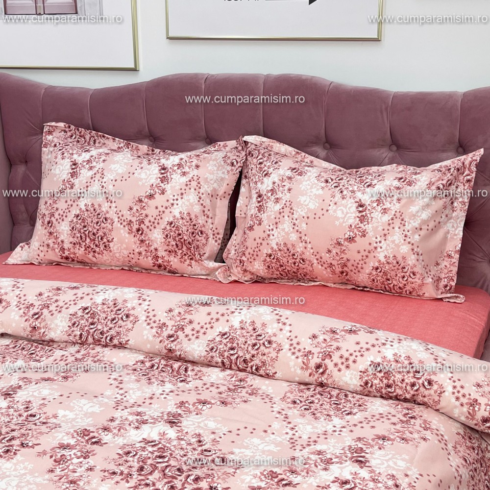 Lenjerie de pat dublu, 4 piese, Bumbac 100% Ranforce, Ralex Pucioasa, cod produs: RXR310