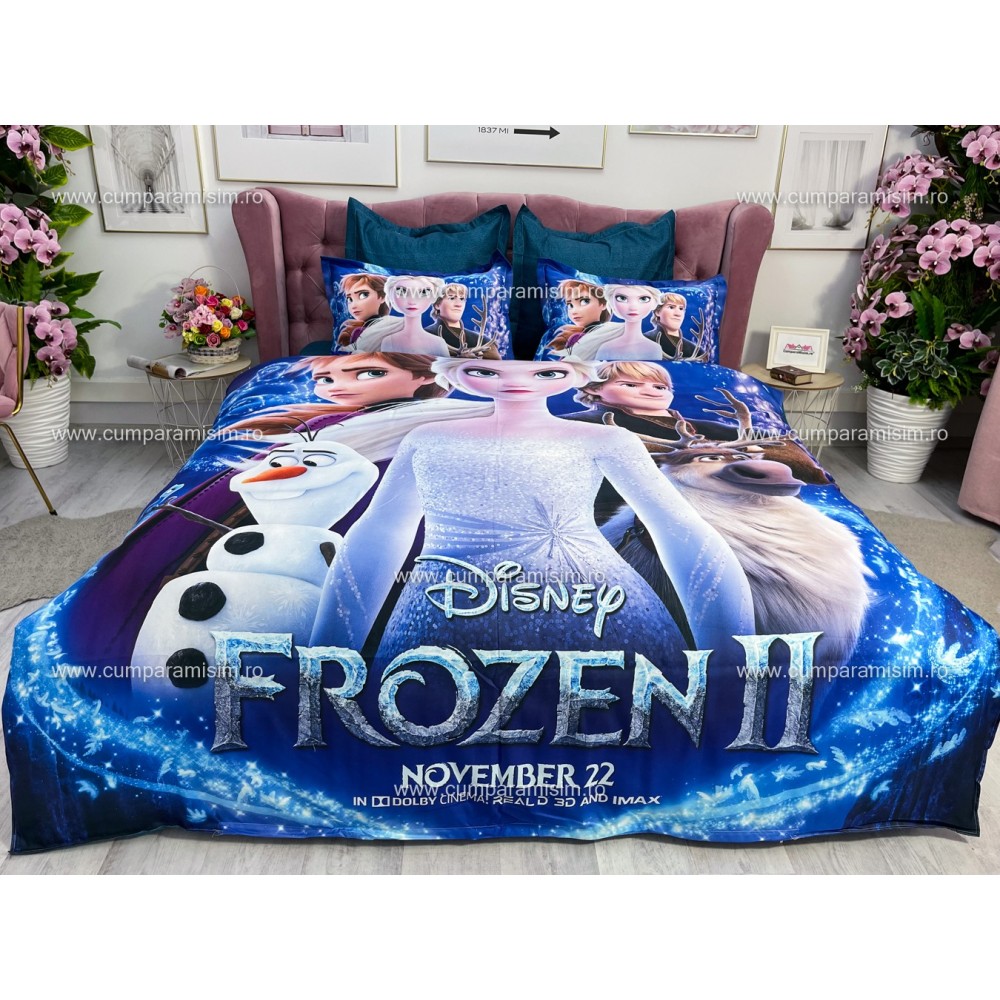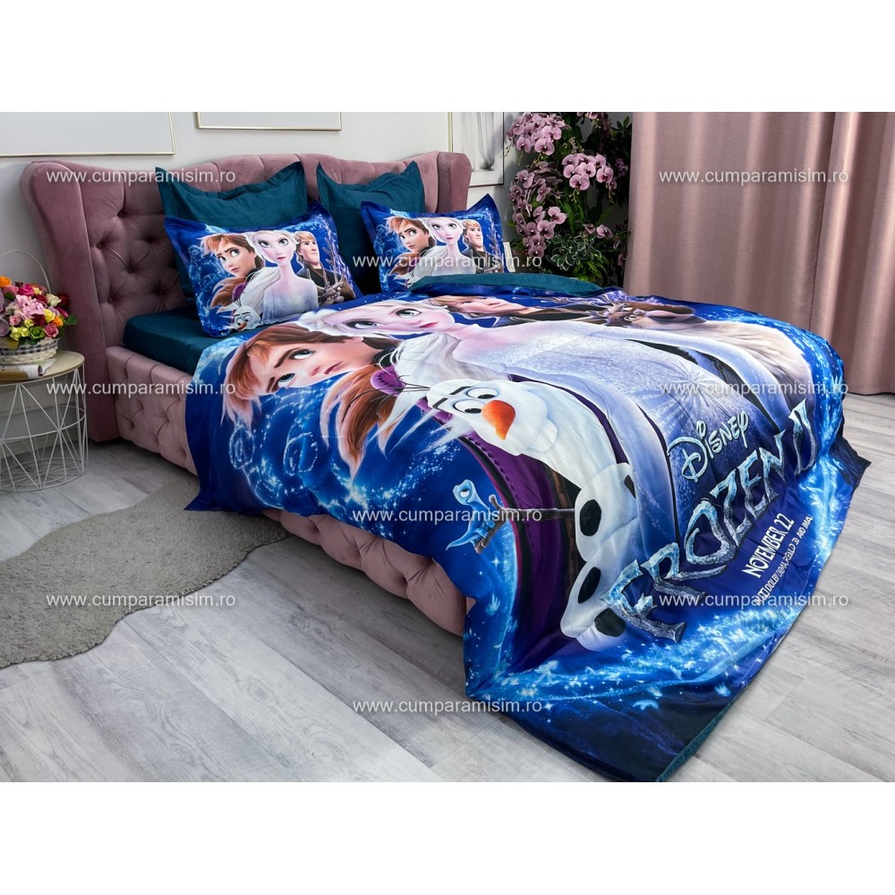 Lenjerie pat dublu, FINET, 6 piese, IDENTICA CU POZA, Albastru, Frozen, Alti producatori, cod produs: LWD6