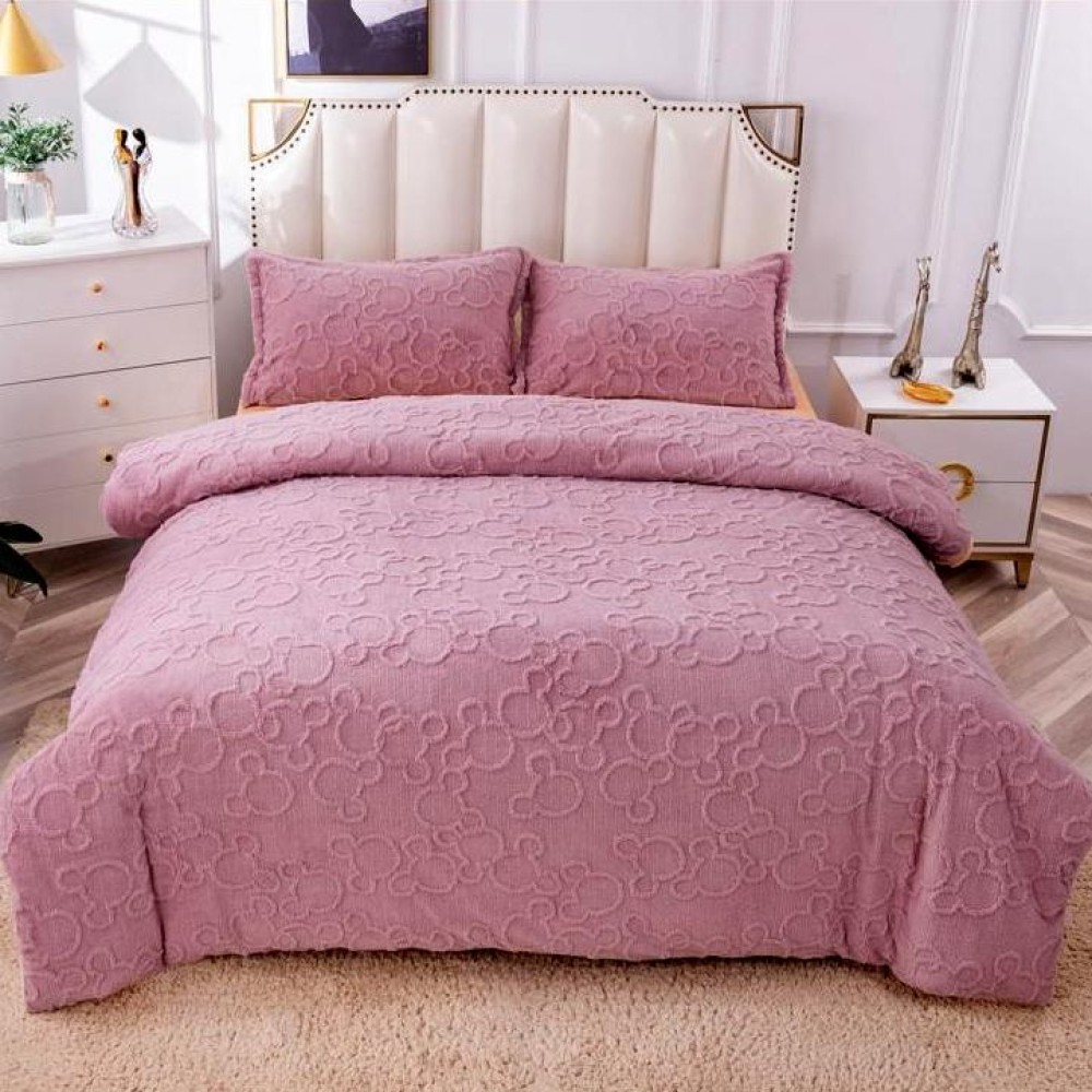 Lenjerie pentru pat dublu pufoasa CoCoLiNo, tip tricotaj, 4 piese, Lila, cod produs: CCP54