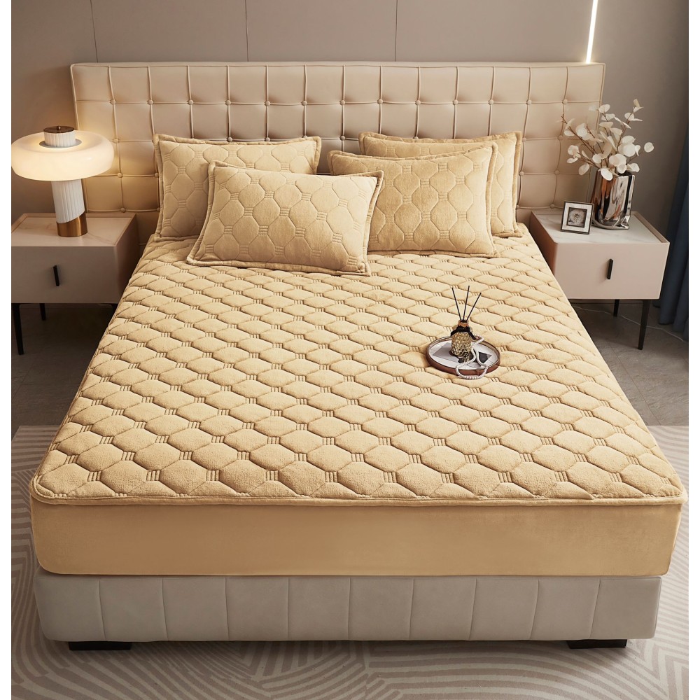 Husã matlasatã tip topper din catifea, 160x200cm + 2 fete de perna 50x70cm, bej, Alti producatori, cod produs: YAT111