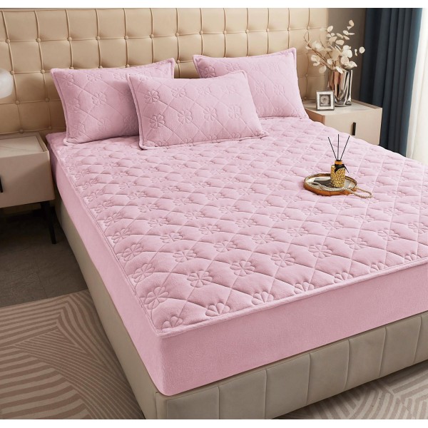 Husã matlasatã tip topper din catifea, 180x200cm + 2 fete de perna 50x70cm, roz, Alti producatori, cod produs: YAT202