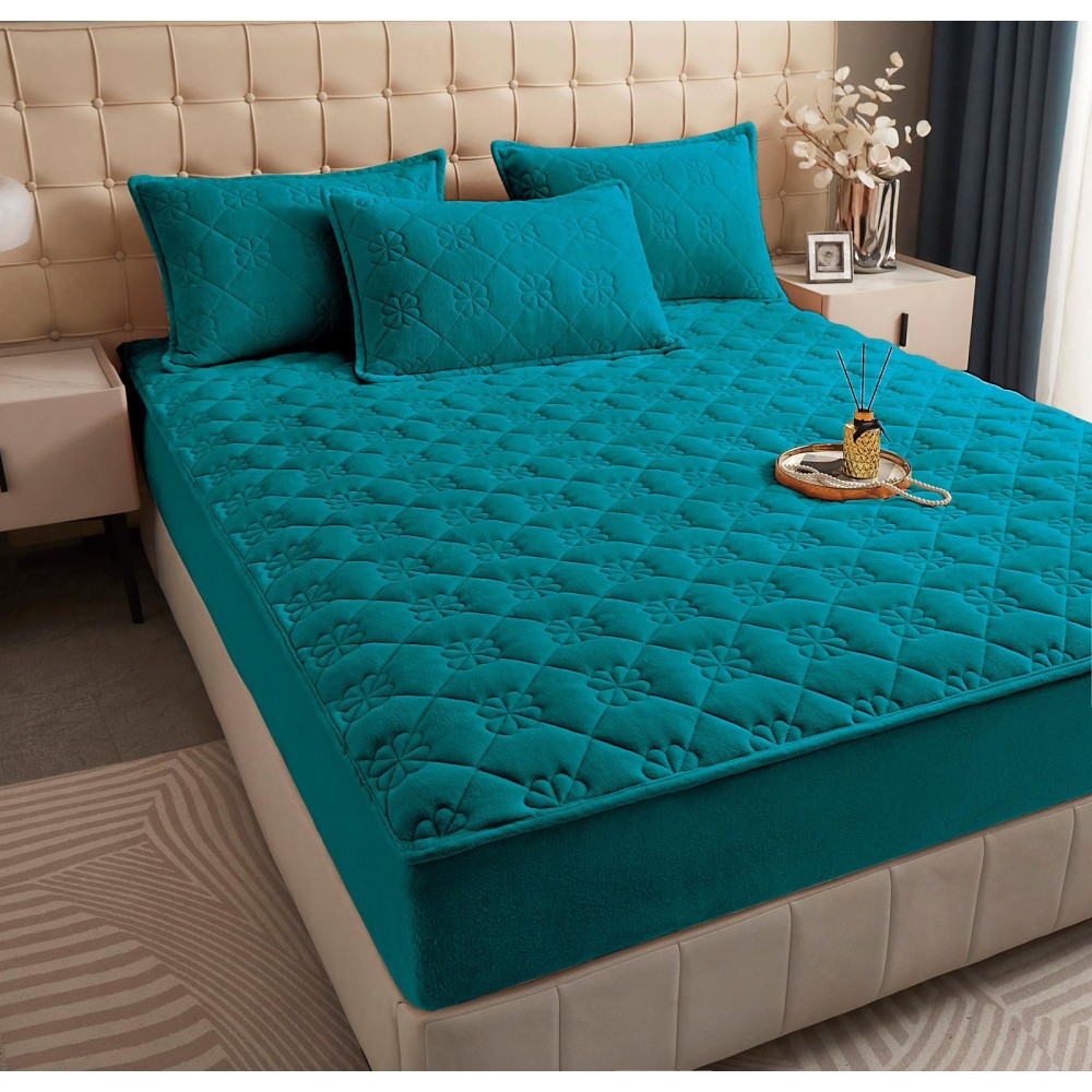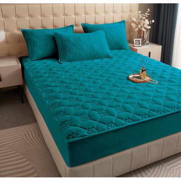 Husã matlasatã tip topper din catifea, 180x200cm + 2 fete de perna 50x70cm, albastru, Alti producatori, cod produs: YAT207