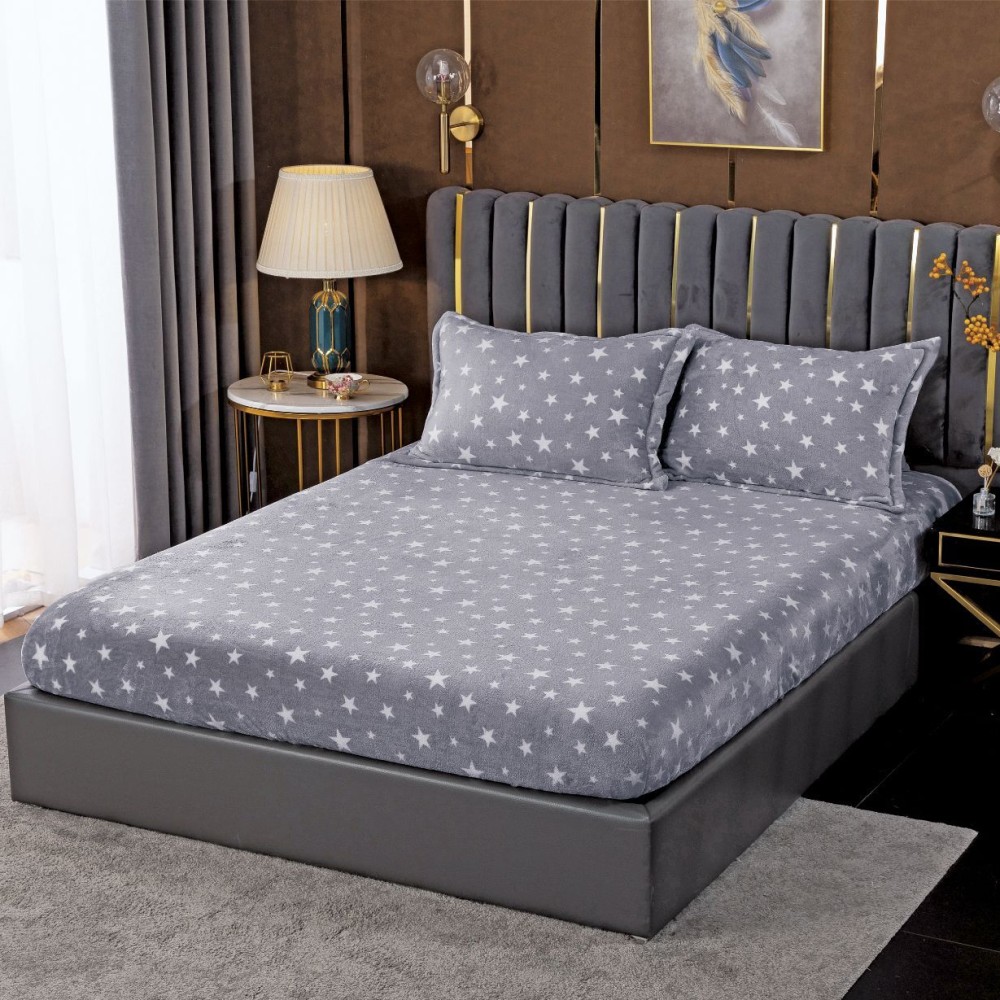 Cearsaf cu elastic COCOLINO, 180x200x25cm, 2 fete de perne, Gri, stelute, CumparaMisim, cod produs: SKH108