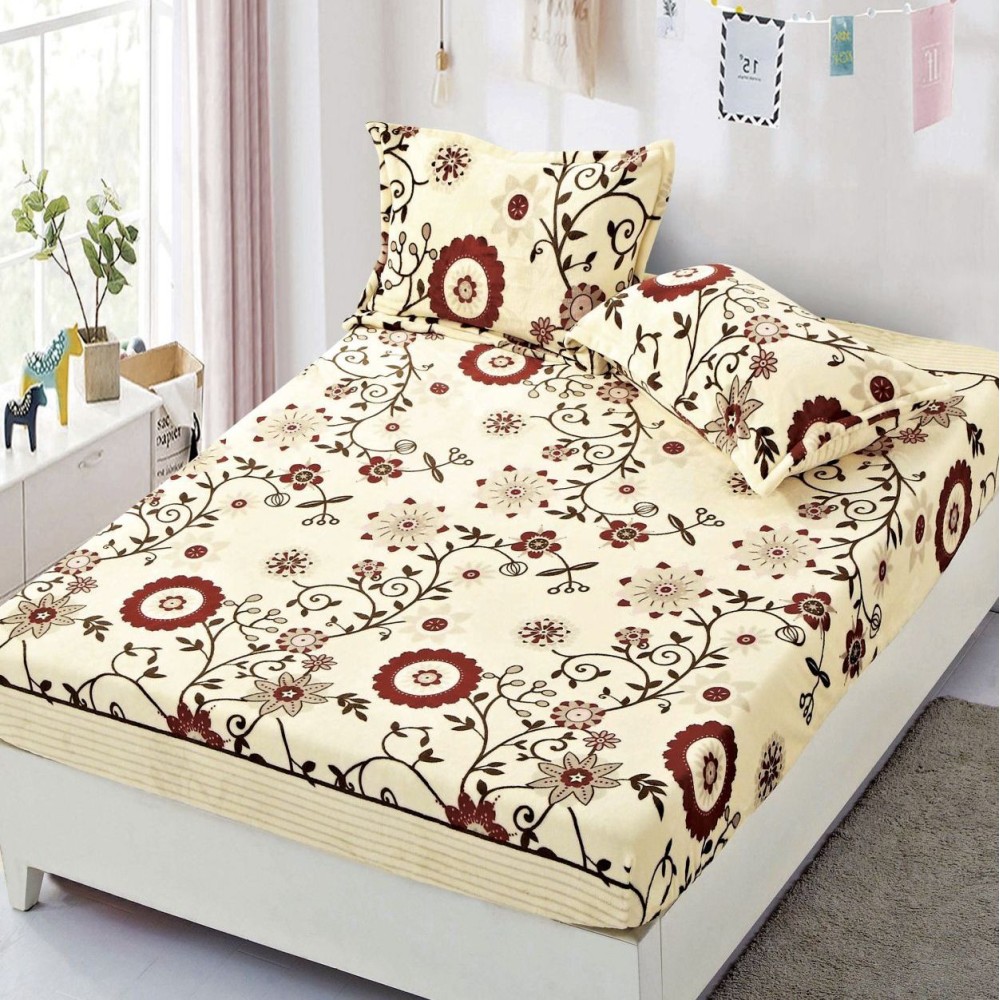 Cearsaf cu elastic COCOLINO, 180x200x25cm, 2 fete de perne, Bej, flori, CumparaMisim, cod produs: SKH113