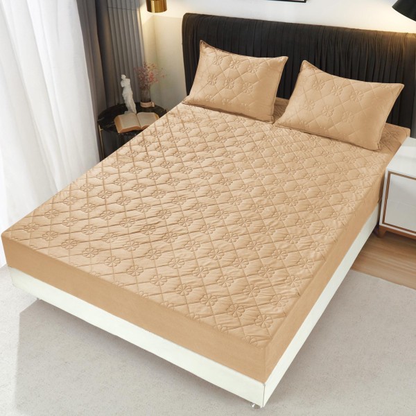Husã matlasatã tip topper din catifea, 180x200cm + 2 fete de perna 50x70cm, Bej, Alti producatori, cod produs: SKT105