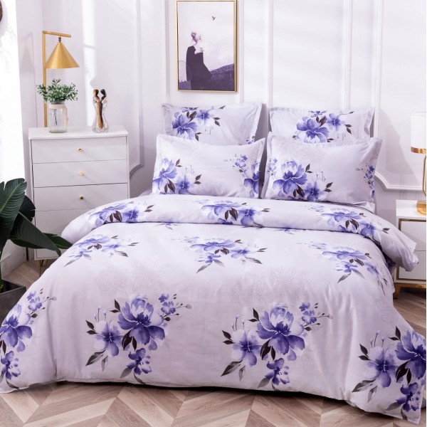 Lenjerie pat dublu, FINET, 6 piese, Gri, flori, CumparaMisim, cod produs: PTK107