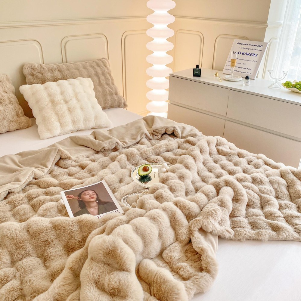 Patura CoCoLiNo ExtraPufoasa din Blanita artificiala de iepure, 200x230cm, Bej, Casa Creativ Elegant Pucioasa, cod produs: SBYp8