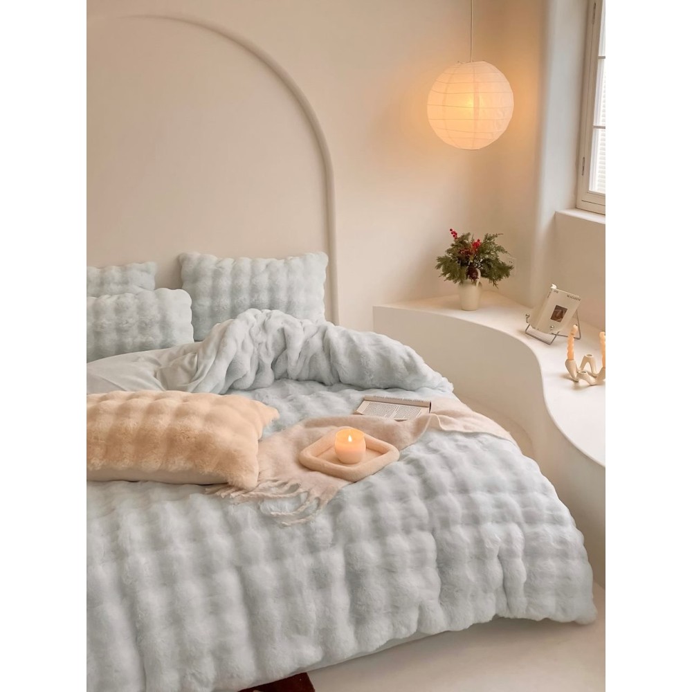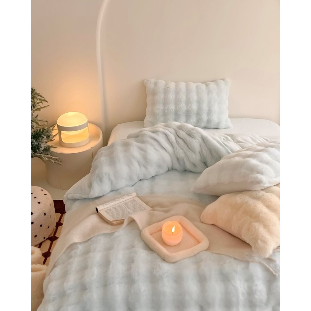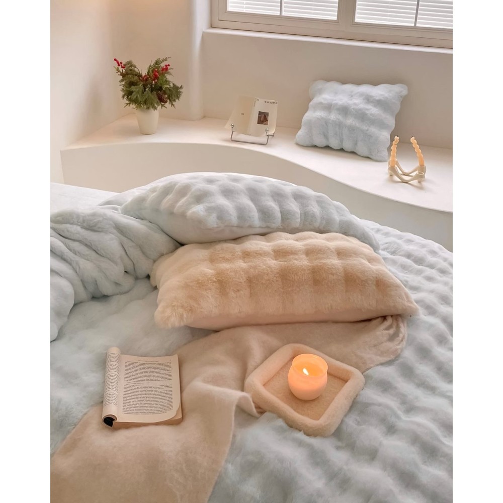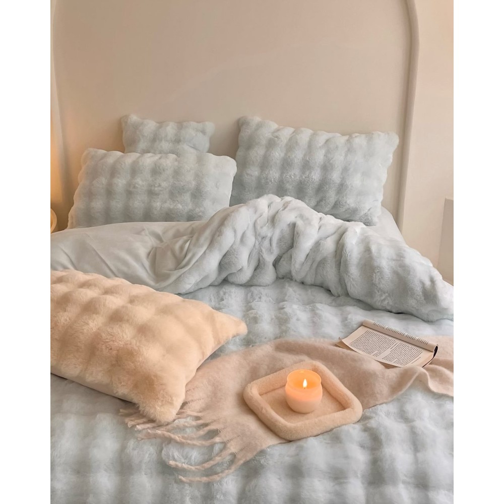Lenjerie de Pat Dublu din Blăniță Artificială de Iepure – Răsfățul Suprem în Fiecare Noapte!