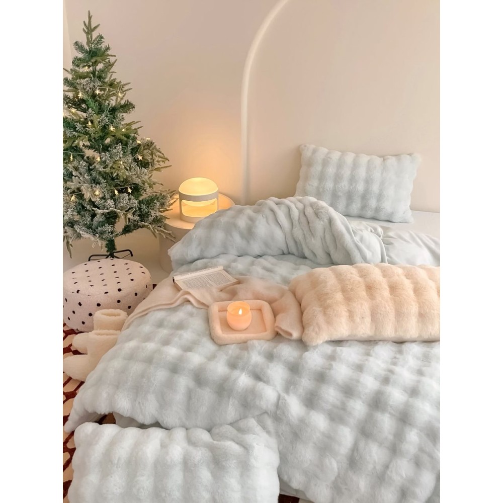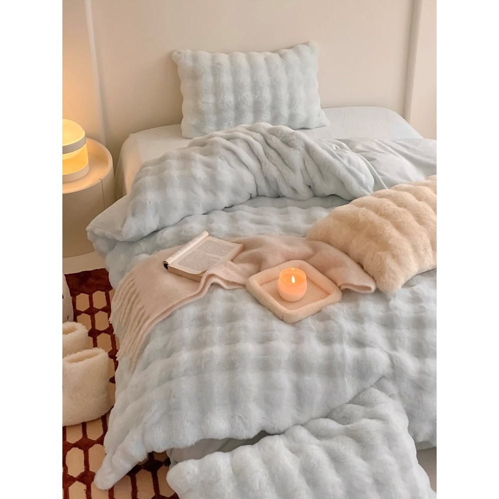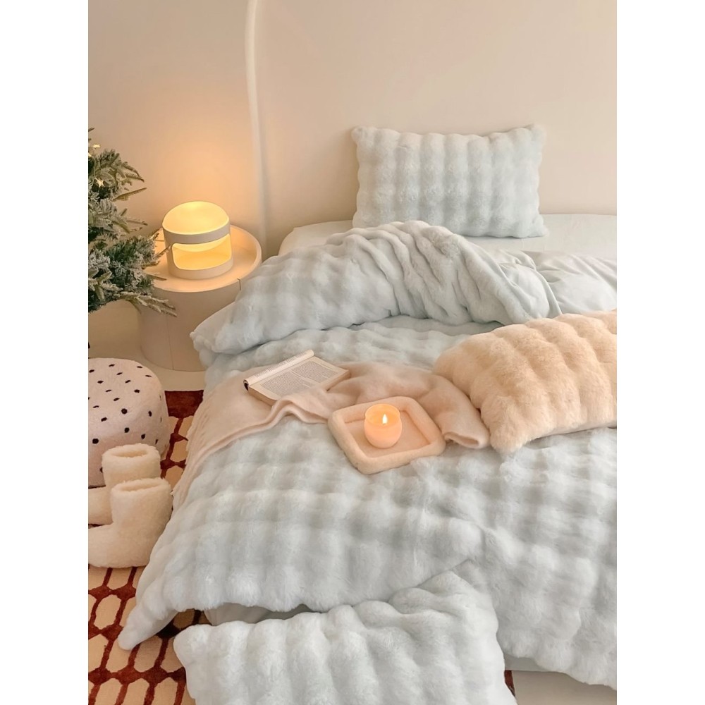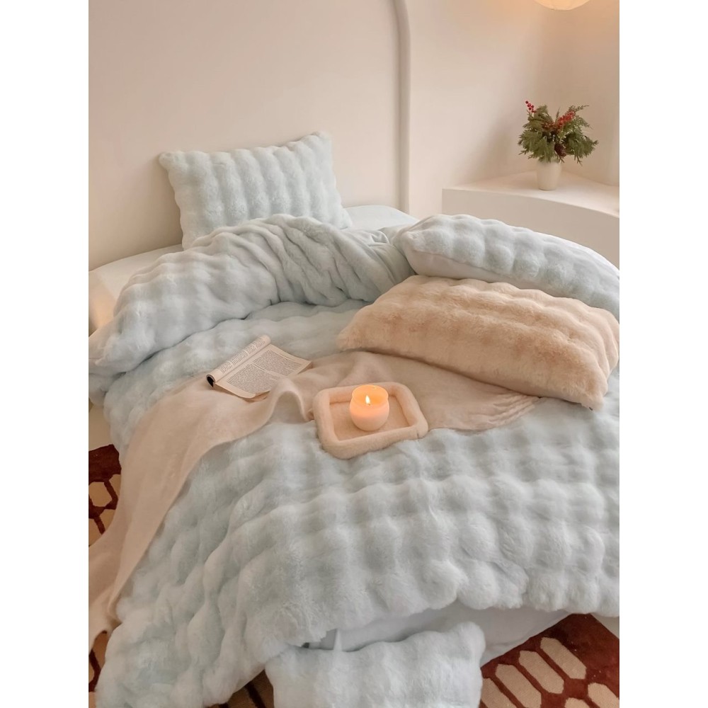 Lenjerie de Pat Dublu din Blăniță Artificială de Iepure – Răsfățul Suprem în Fiecare Noapte!