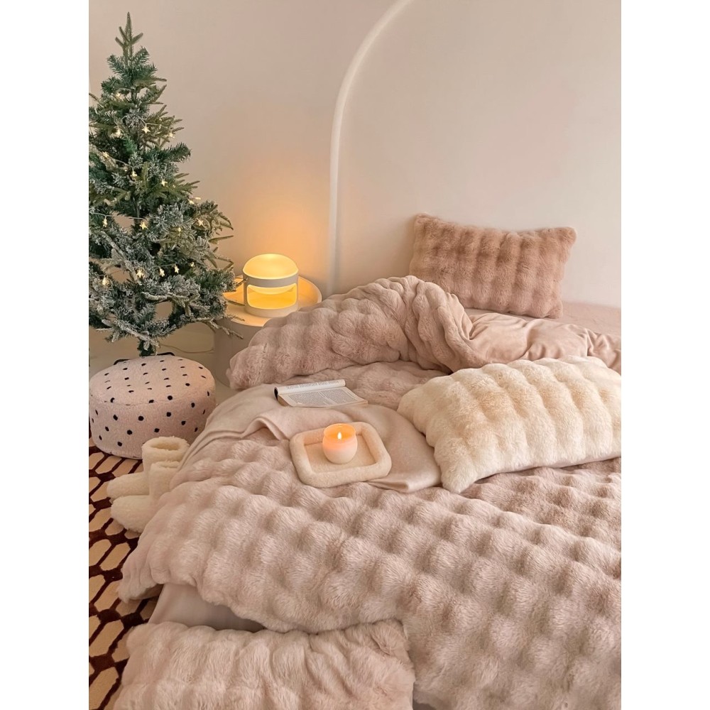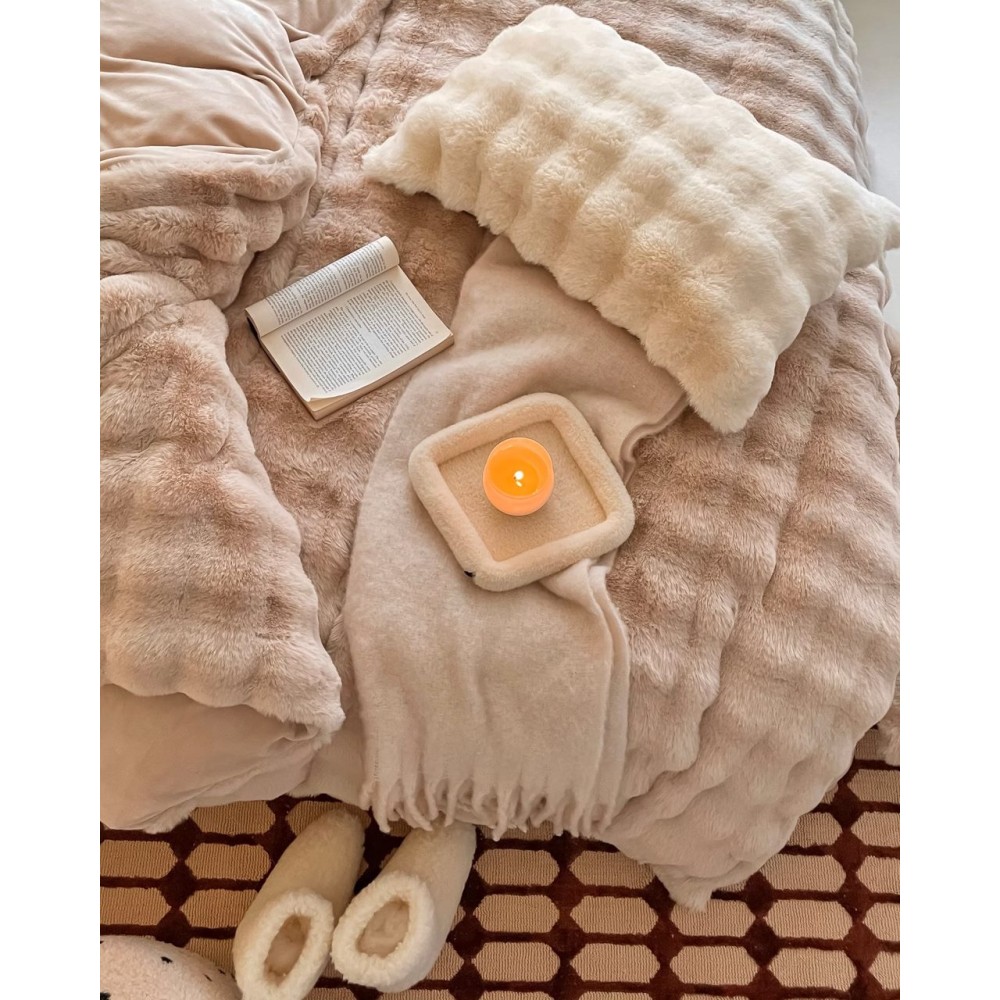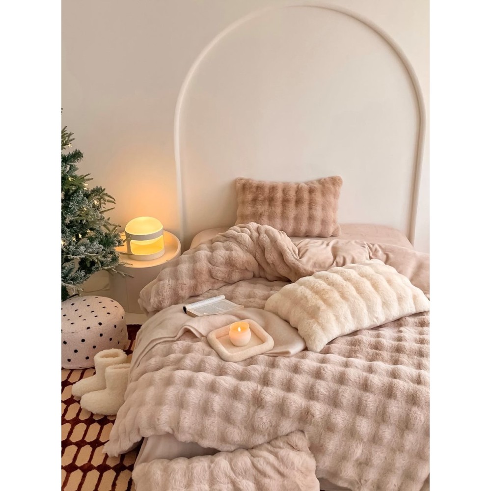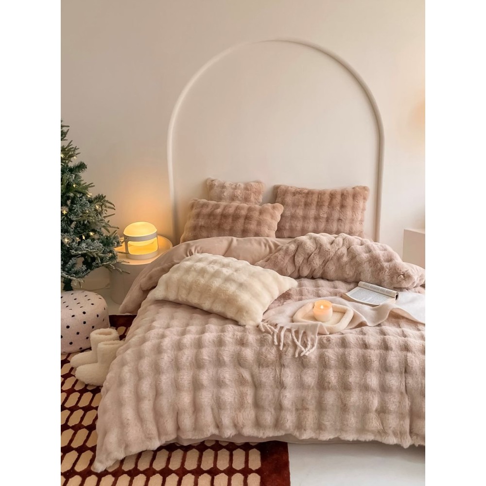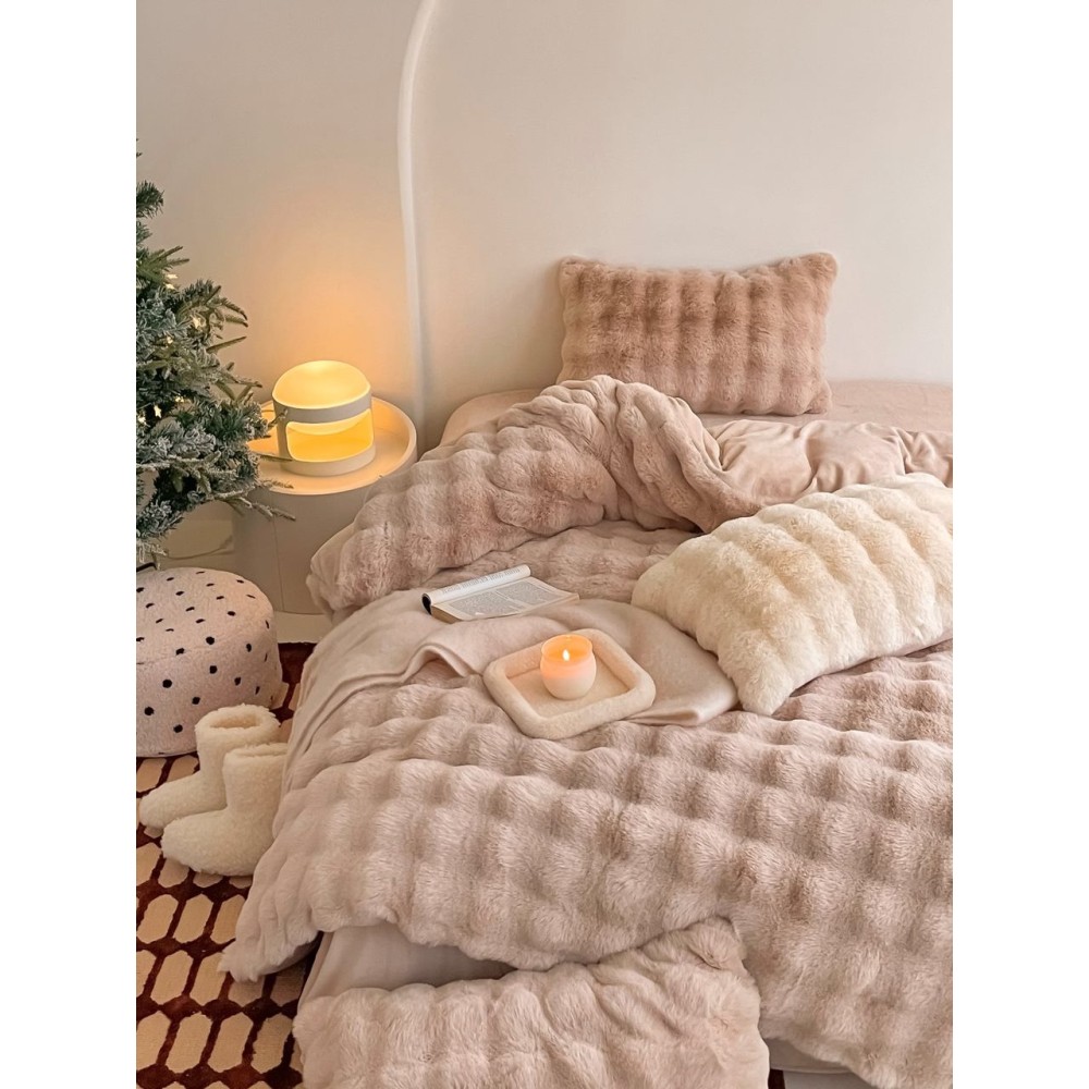 Lenjerie de Pat Dublu, ExtraPufoasa din Blăniță Artificială de Iepure, 4 piese, Bej – Confort Premium și Eleganță Absolută, Casa Creativ Elegant Pucioasa, cod produs: BCC-BY-10