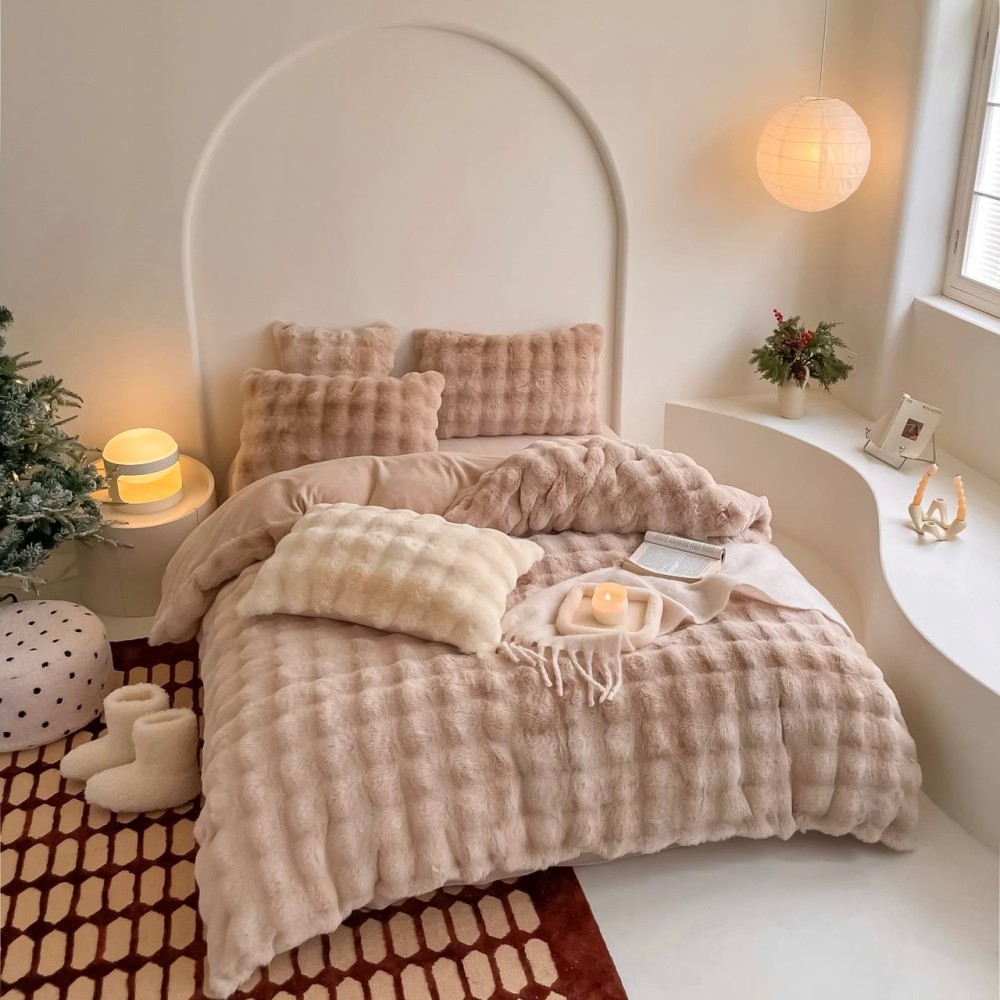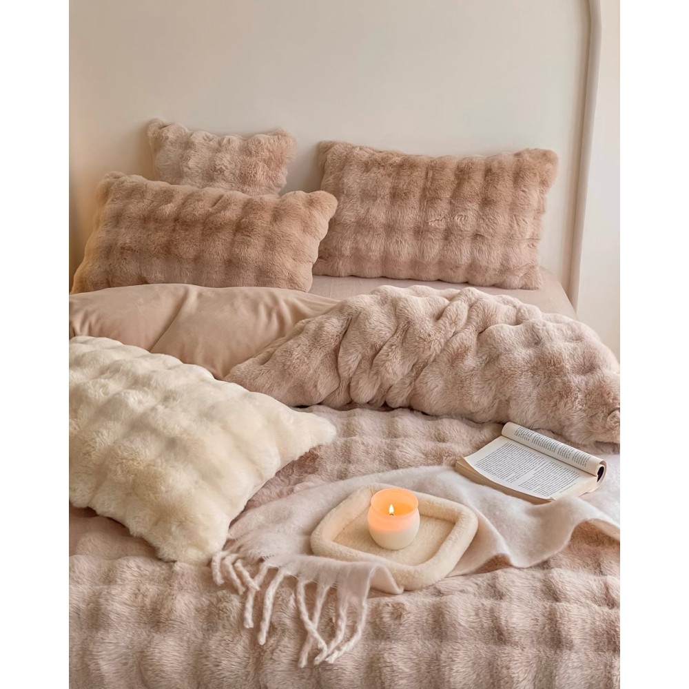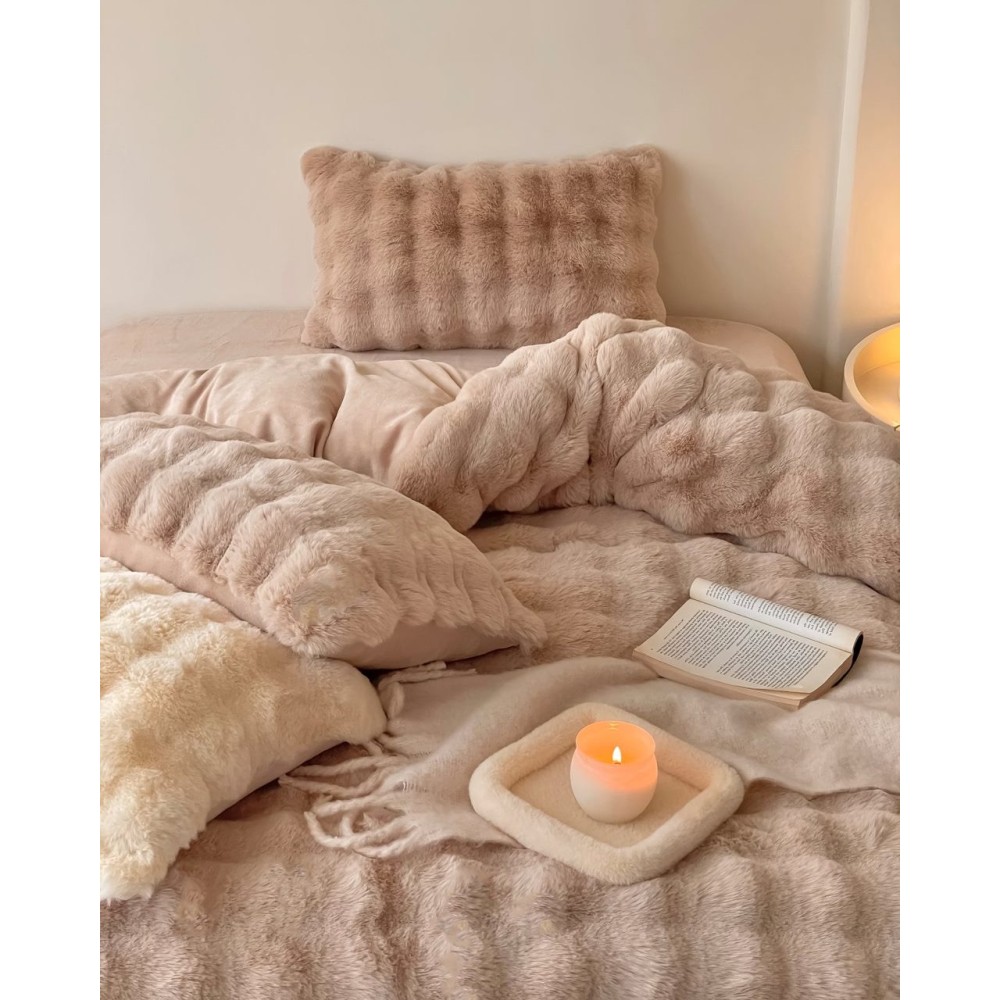 Lenjerie de Pat Dublu din Blăniță Artificială de Iepure – Răsfățul Suprem în Fiecare Noapte!