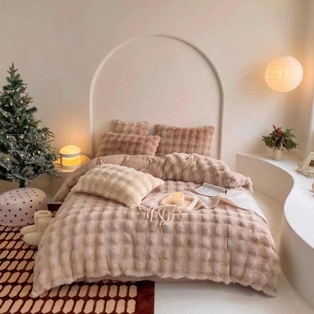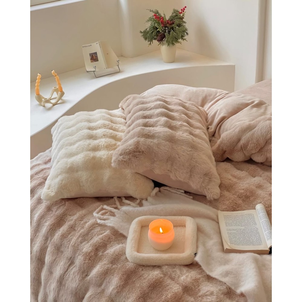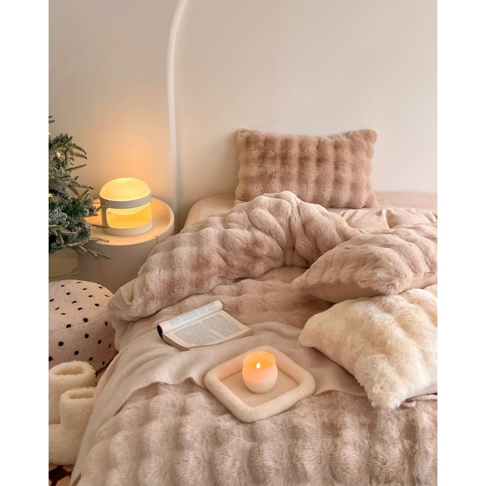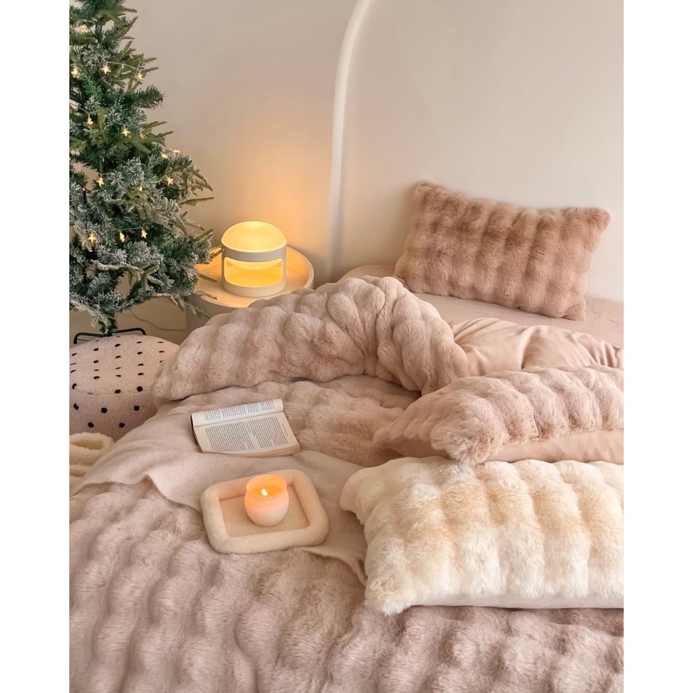 Lenjerie de Pat Dublu din Blăniță Artificială de Iepure – Răsfățul Suprem în Fiecare Noapte!
