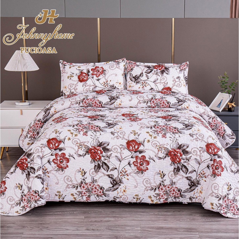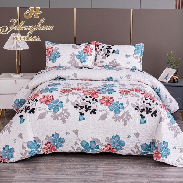 Cuvertura pentru pat dublu cu 2 fete, matlasata, Albastru, flori, Johny Home Pucioasa, cod produs: SPR-V5