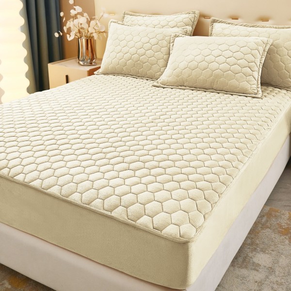 Husã matlasatã tip topper din catifea, 160x200cm + 2 fete de perna 50x70cm, crem, Alti producatori, cod produs: YAT116