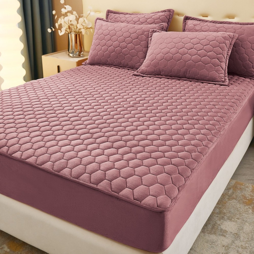 Husã matlasatã tip topper din catifea, 160x200cm + 2 fete de perna 50x70cm, roz pudra, Alti producatori, cod produs: YAT123