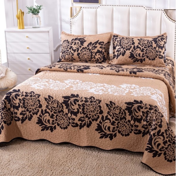 Cuvertura pat dublu din Bumbac Satinat Superior, 3 PIESE, Negru, floral, Alti producatori, cod produs: CVP11