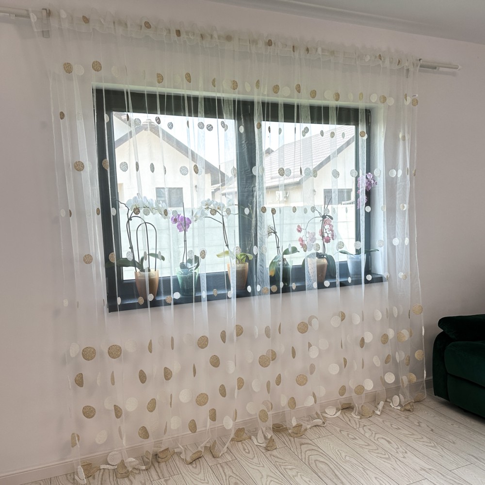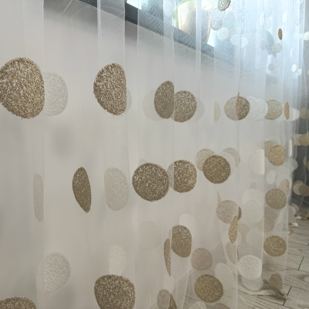 Perdea cu buline brodate - 5m latime x 2.4m inaltime, cu rejansa pentru BARA, Alb-Auriu, CumparaMisim, cod produs: APDs2b
