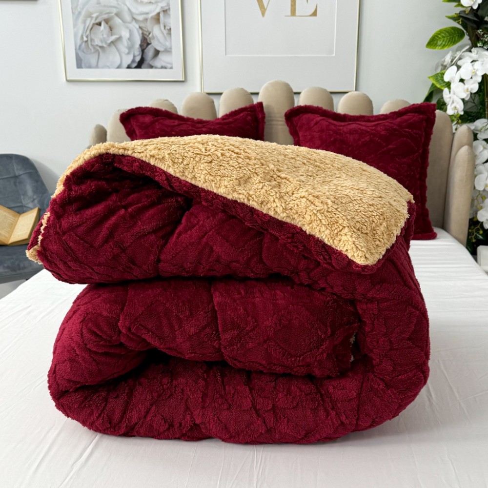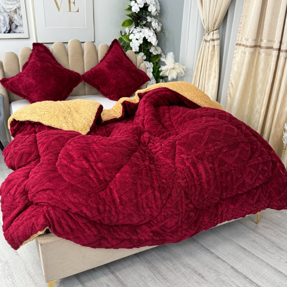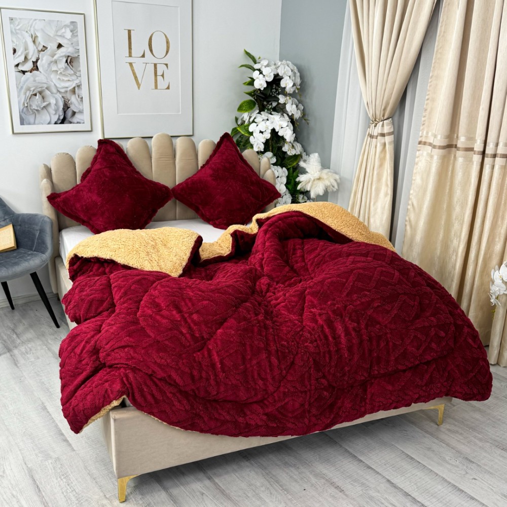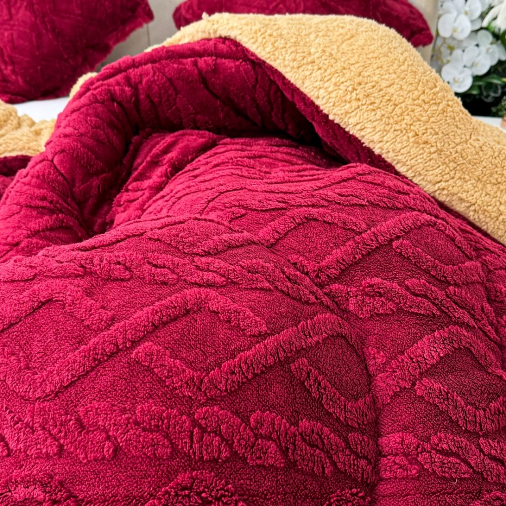 Pilota CoCoLiNo Sherpa tip Tricotaj cu blanita, matlasata, 200x230cm, Visiniu, cod produs: YOP120