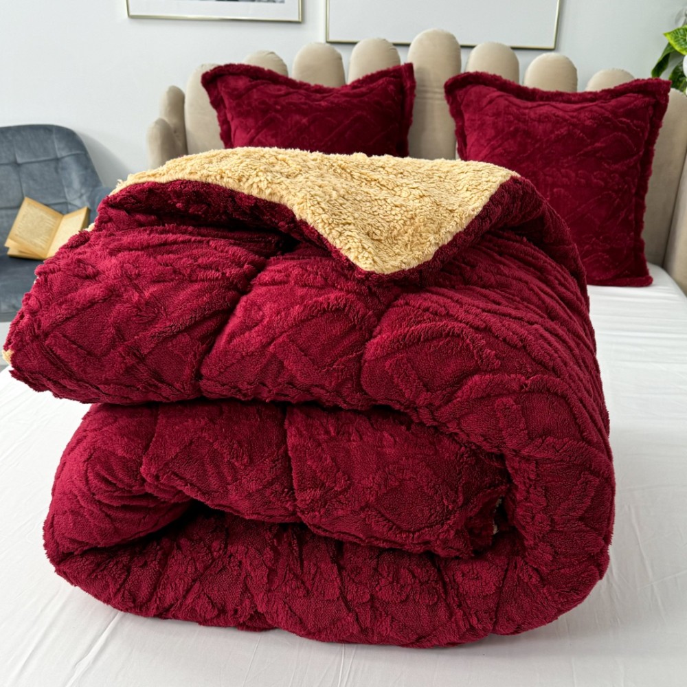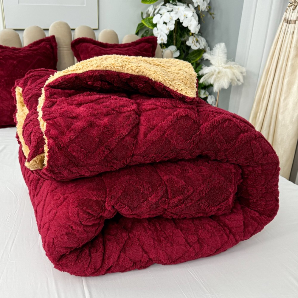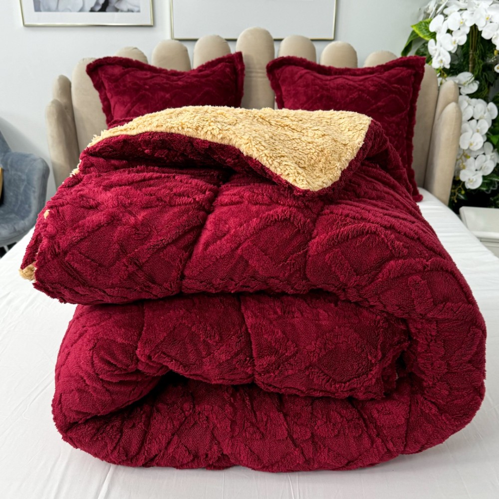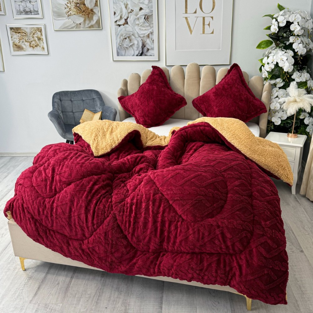 Pilota CoCoLiNo Sherpa tip Tricotaj cu blanita, matlasata, 200x230cm, Visiniu, cod produs: YOP120