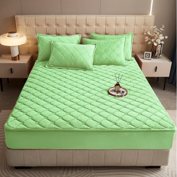 Husã matlasatã tip topper din catifea, 160x200cm + 2 fete de perna 50x70cm, verde, Alti producatori, cod produs: YAT124