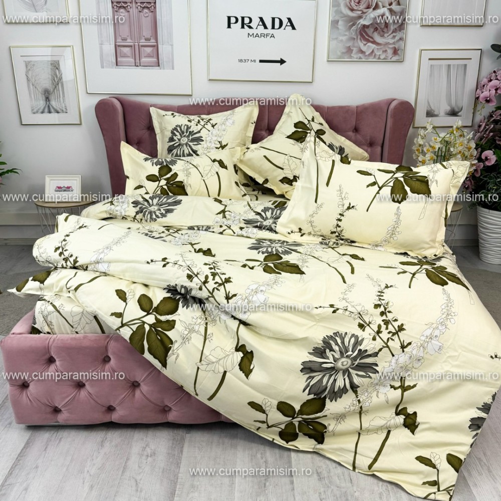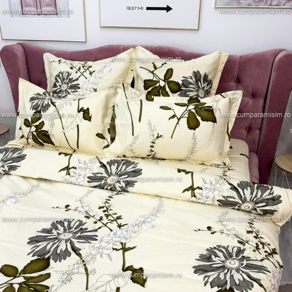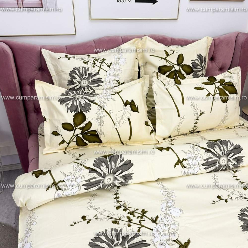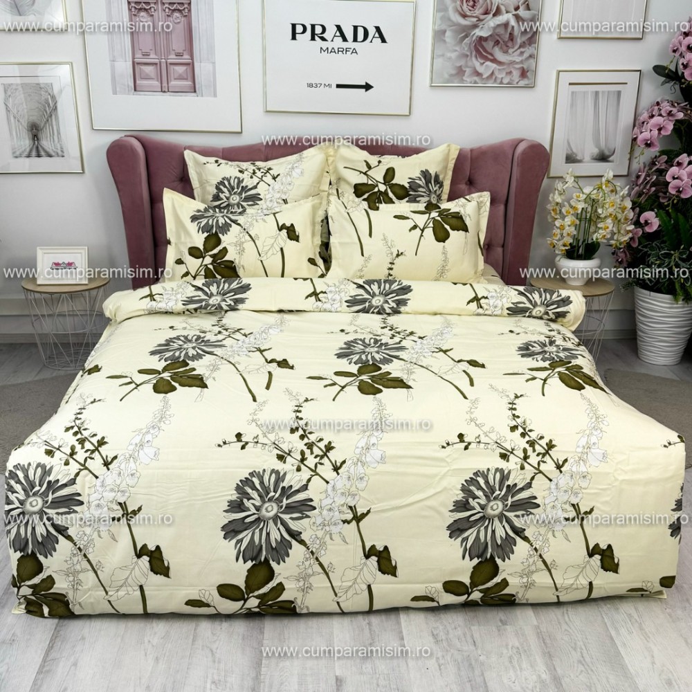 Lenjerie pat dublu, FINET, 6 piese, Bej, flori, Alti producatori, cod produs: YNF7