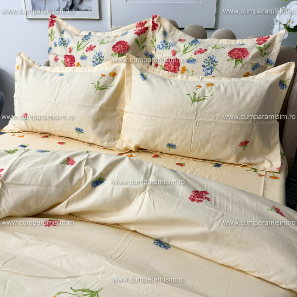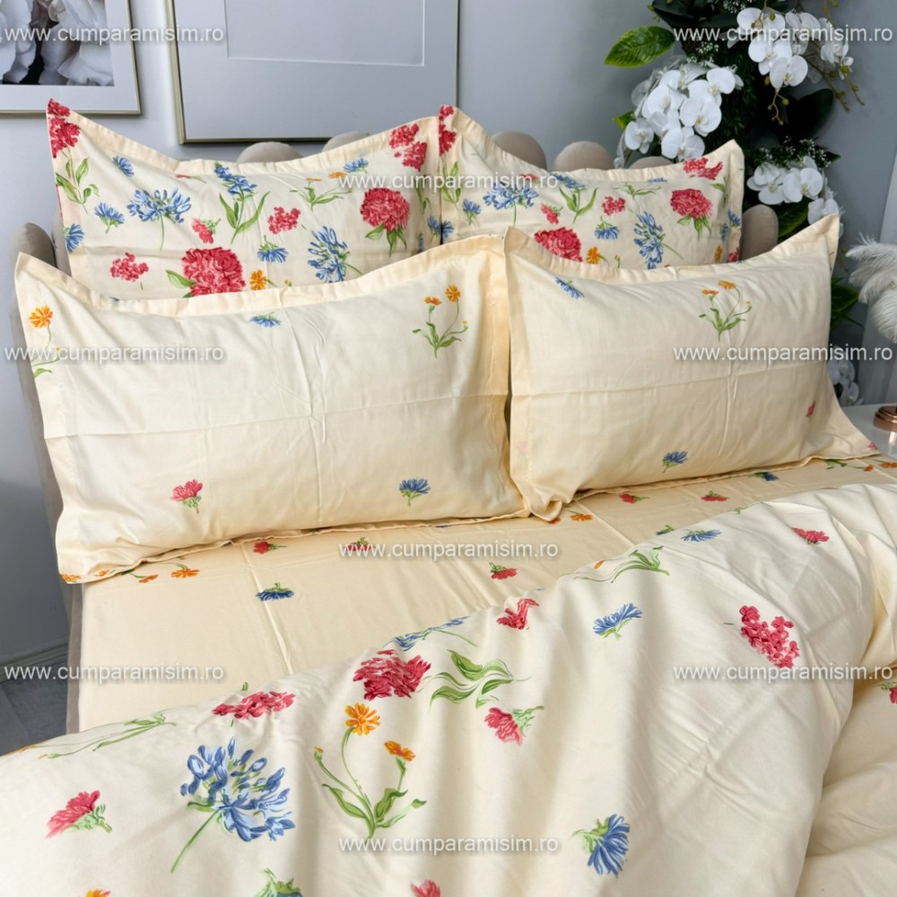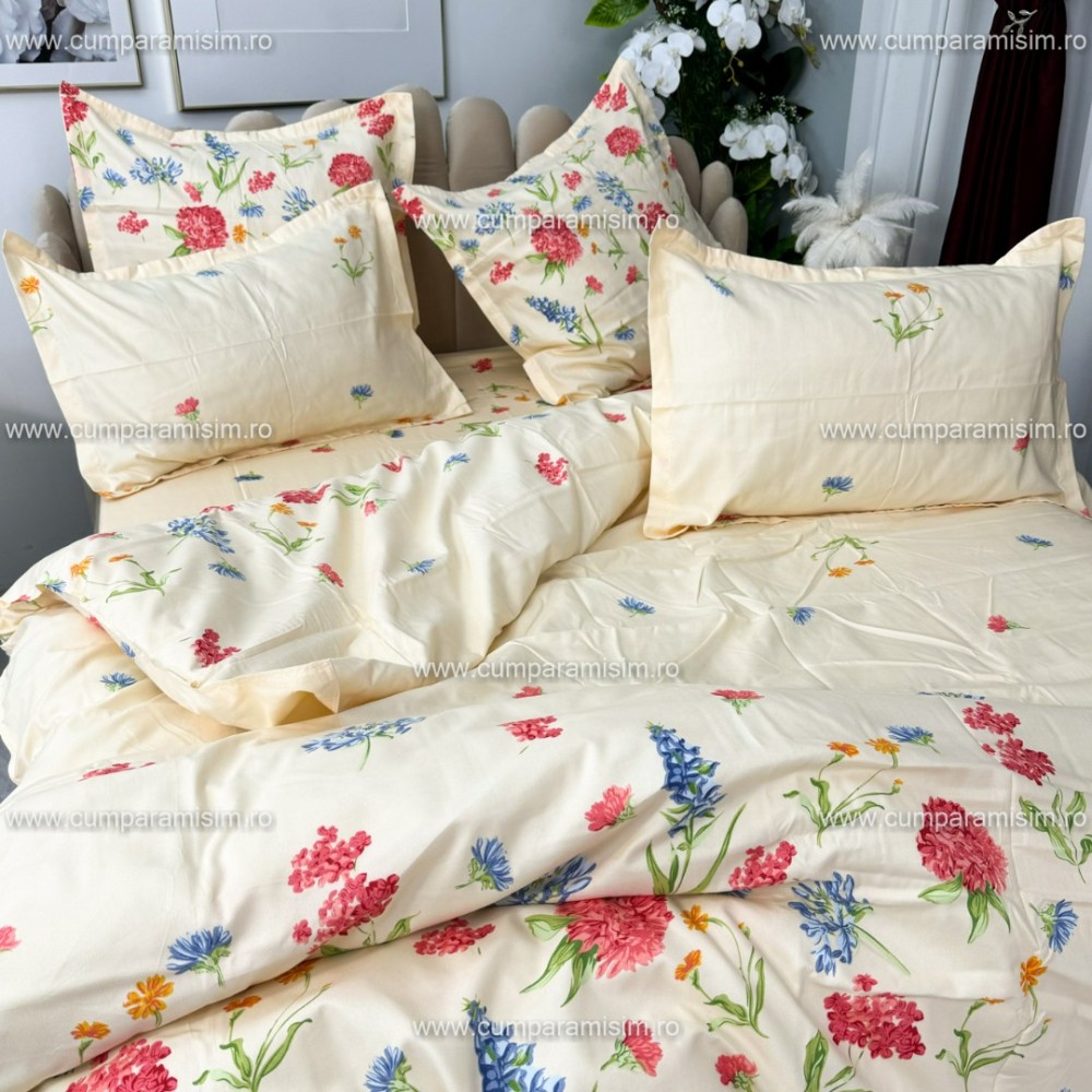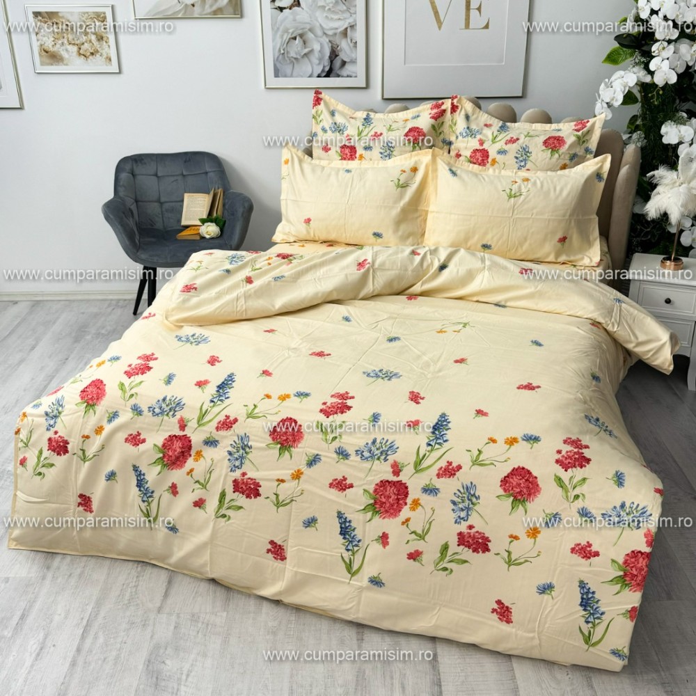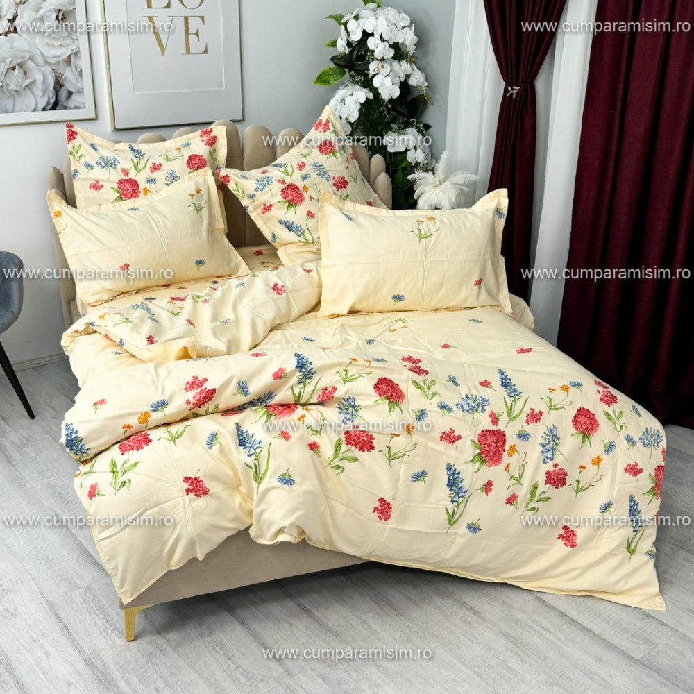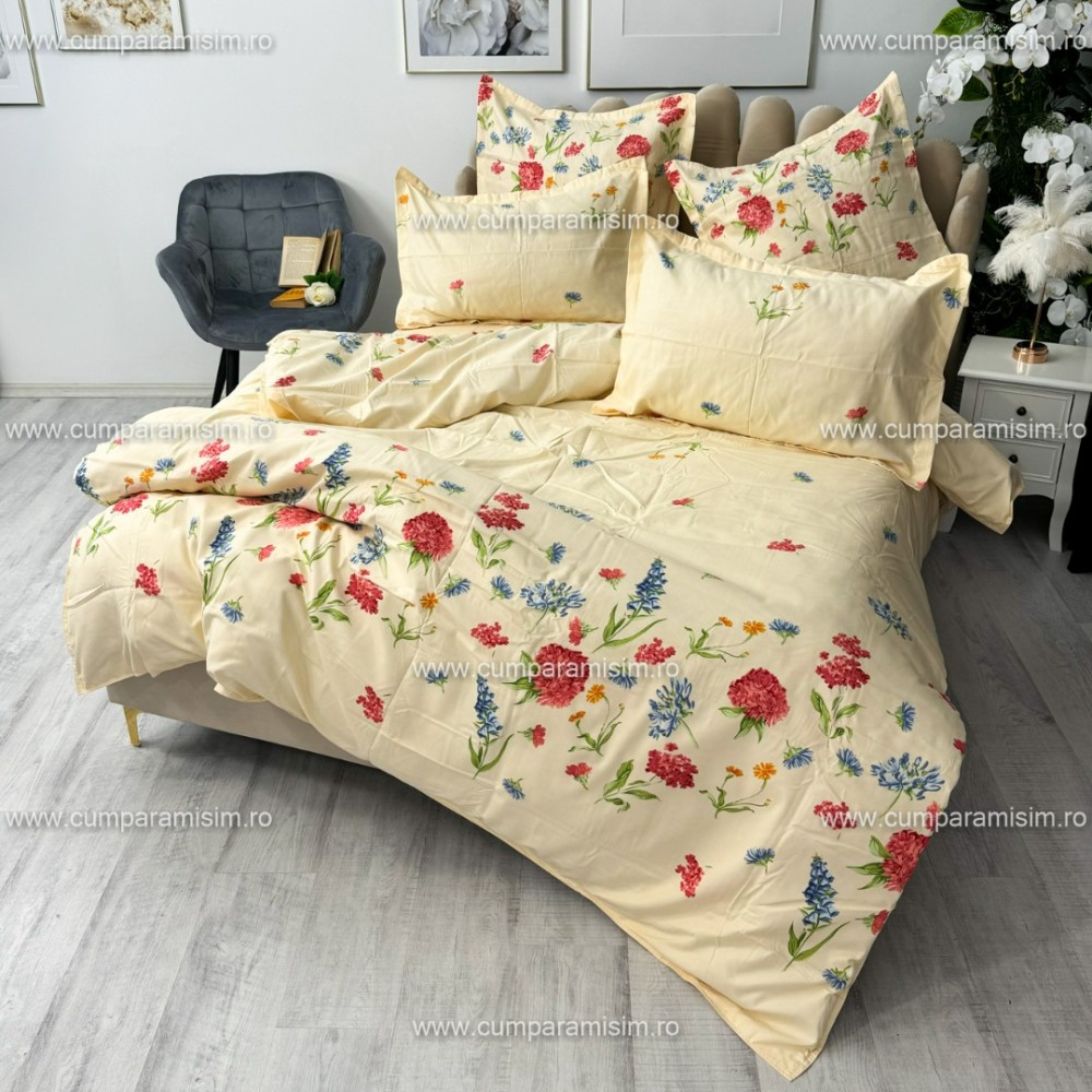Lenjerie pat dublu, FINET, 6 piese, Bej, flori, Alti producatori, cod produs: YNF25