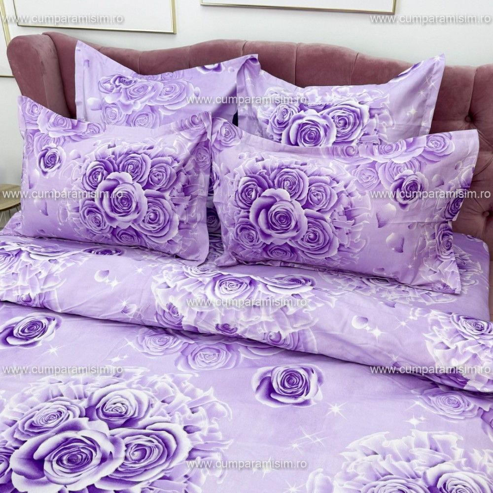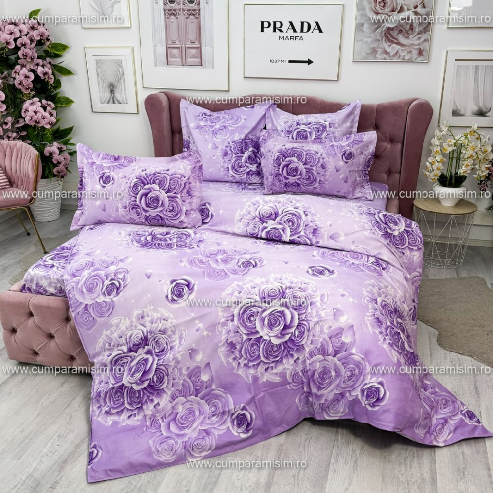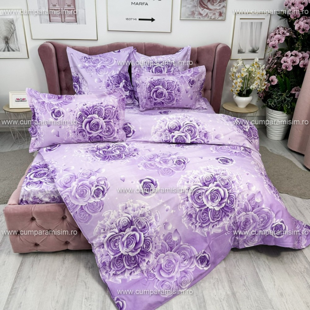 Lenjerie pat dublu, FINET, 6 piese, Mov, trandafiri, Alti producatori, cod produs: YNF27
