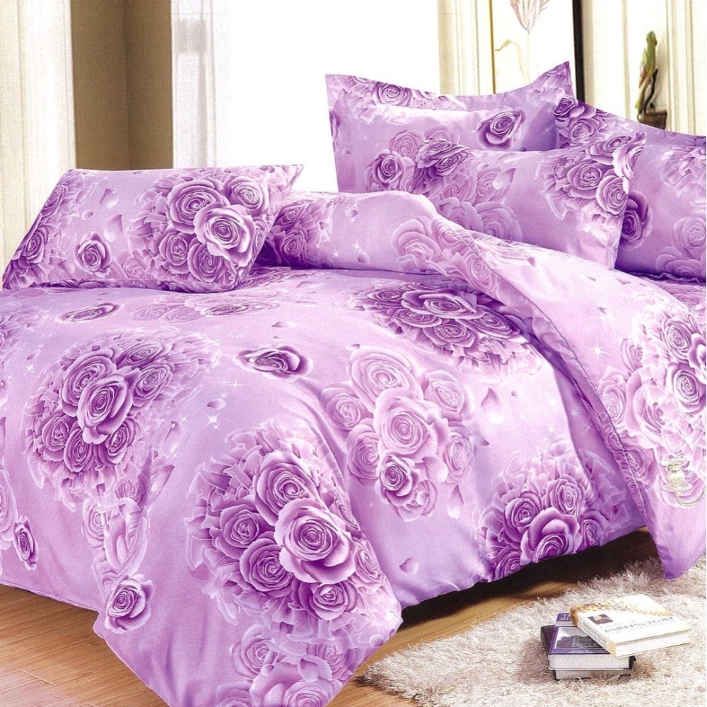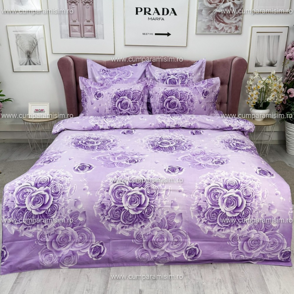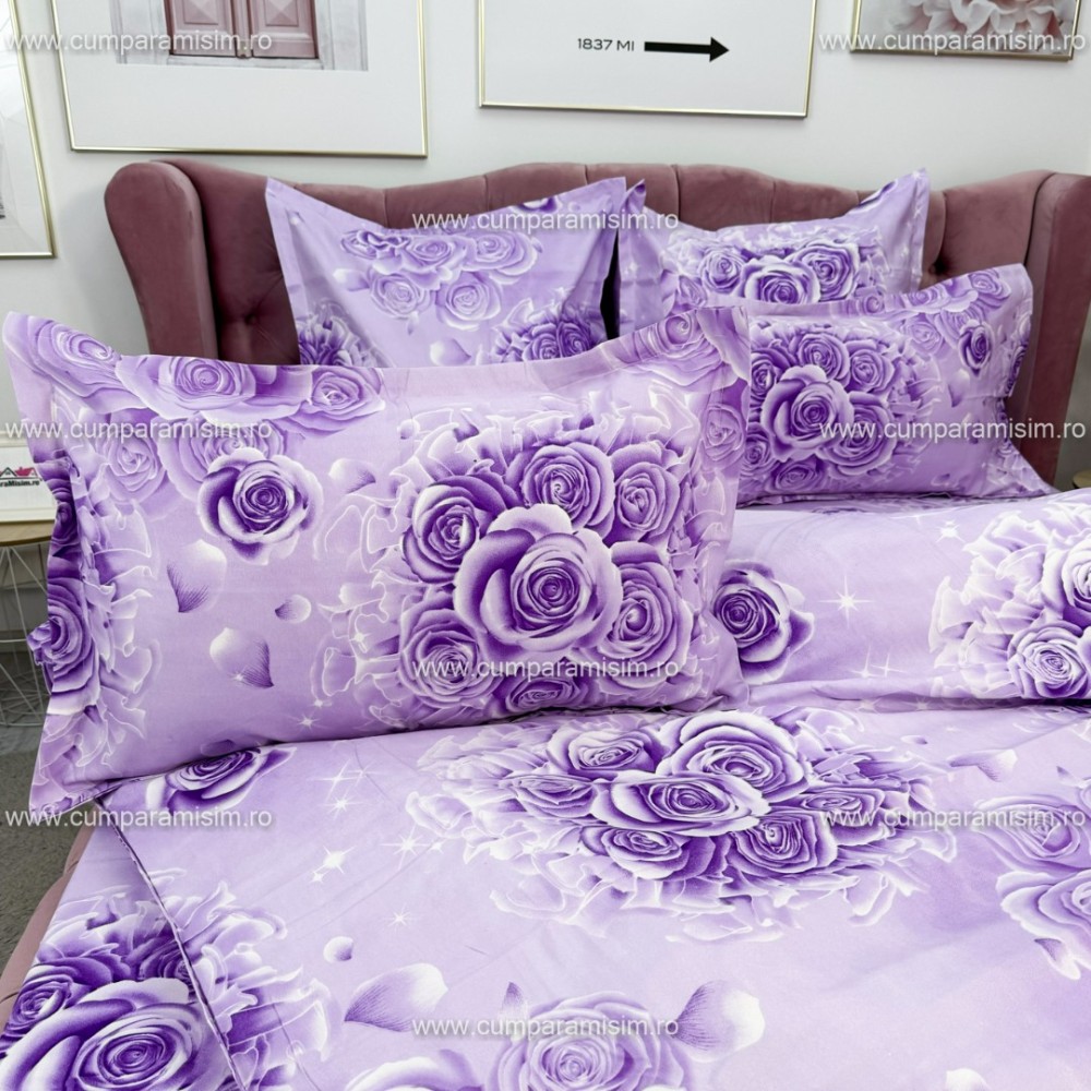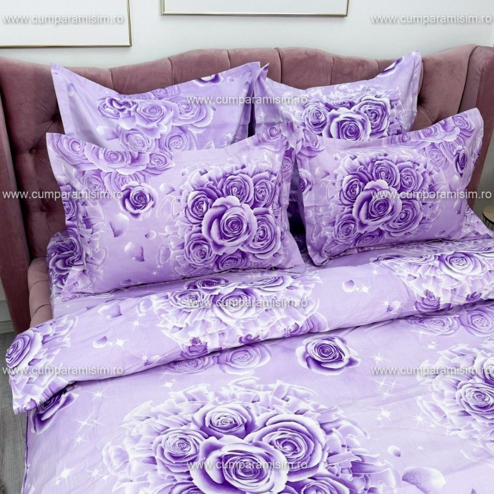 Lenjerie pat dublu, FINET, 6 piese, Mov, trandafiri, Alti producatori, cod produs: YNF27