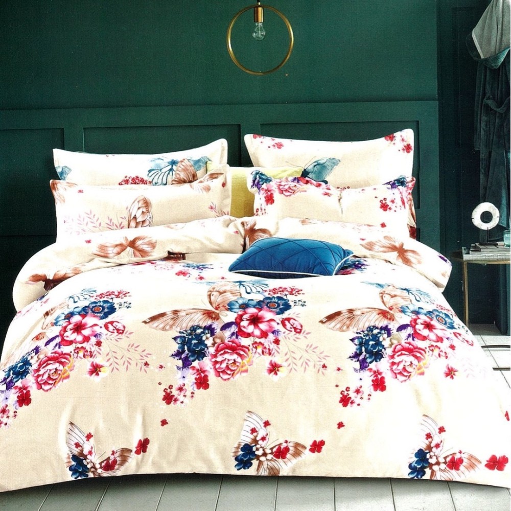 Lenjerie pat dublu, FINET, 6 piese, Bej, flori, fluturi, Alti producatori, cod produs: YNF40