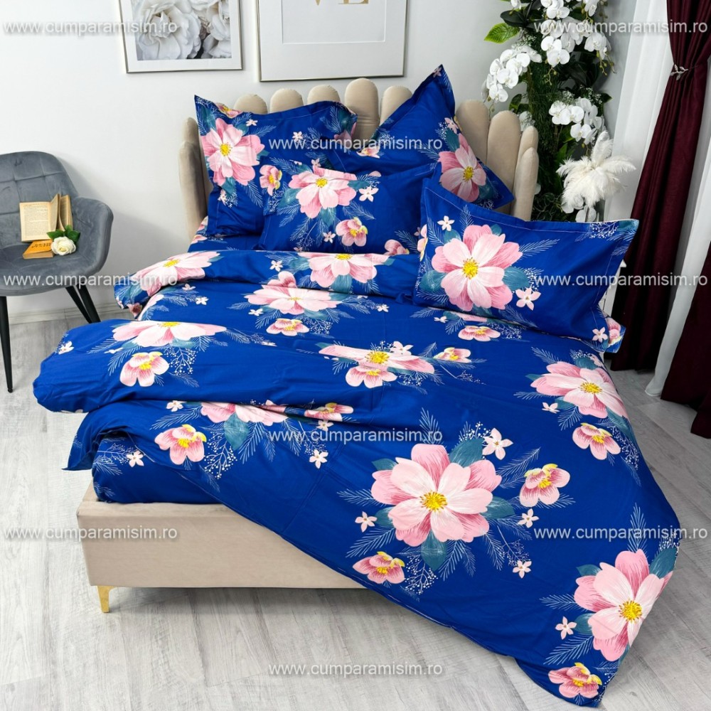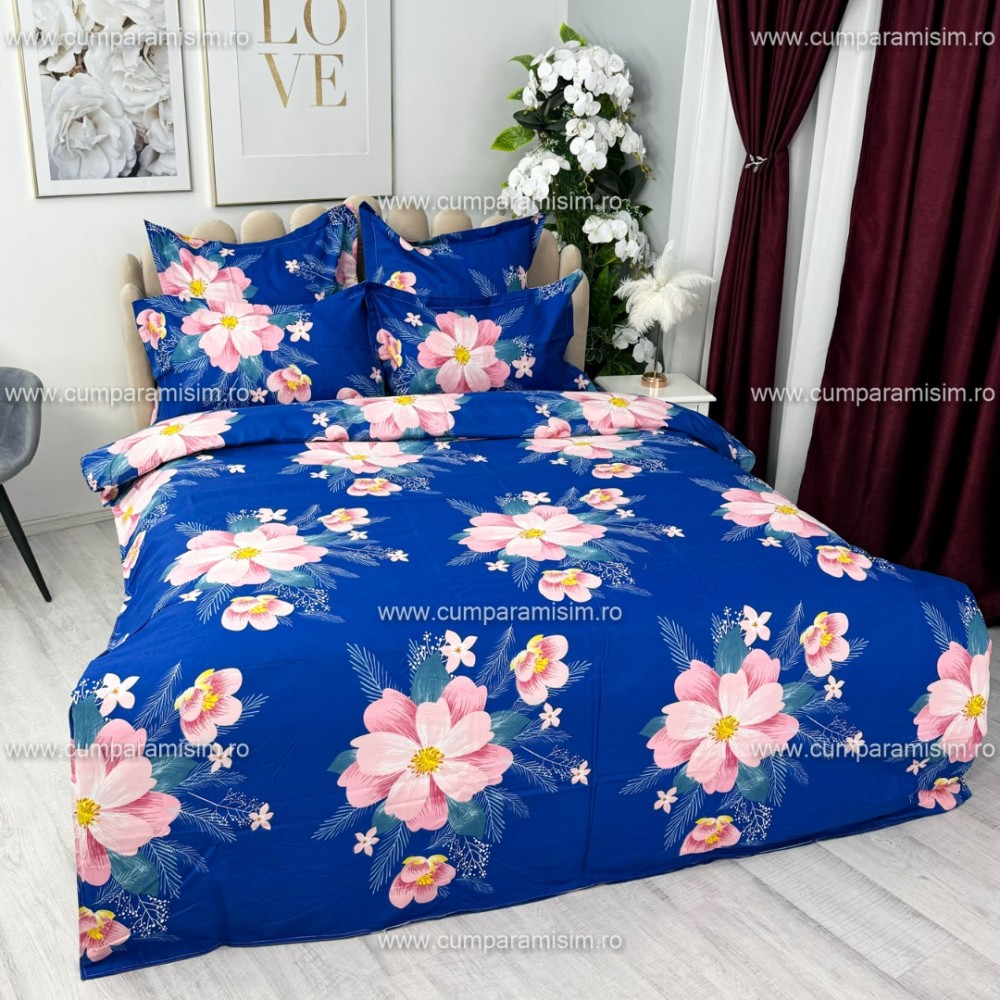 Lenjerie pat dublu, FINET, 6 piese, Roz, flori, Alti producatori, cod produs: YNF41