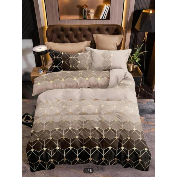 Lenjerie pat dublu, FINET, 6 piese, Maro, forme geometrice, Alti producatori, cod produs: FYN135